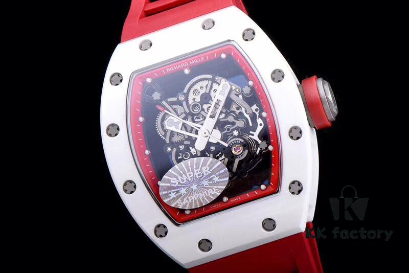 KV Taiwan Factory’s Latest Masterpiece! Richard Mill RM055 White Ceramic Case with White/Red Rubber Strap New Arrival!
