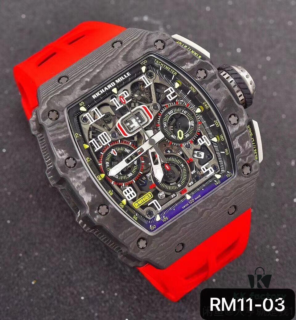 Richard Mille RM11-03 Elevated to Artistic Excellence, Premium Carbon Fiber Case with Grand Date, Chronograph, Flyback/Reverse Jump Multi-Function Automatic Movement, Imported Rubber Strap with Original Folding Clasp, 50x40mm – Exemplifying Richard Mill’s Luxury and Timeless Heritage