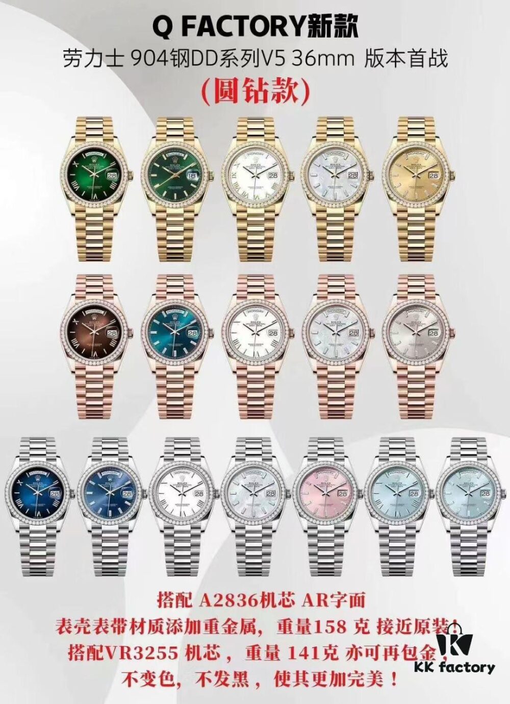 QF Weighted Version Rolex Day-Date Dual-Calendar 2836 Movement 40mm 185G