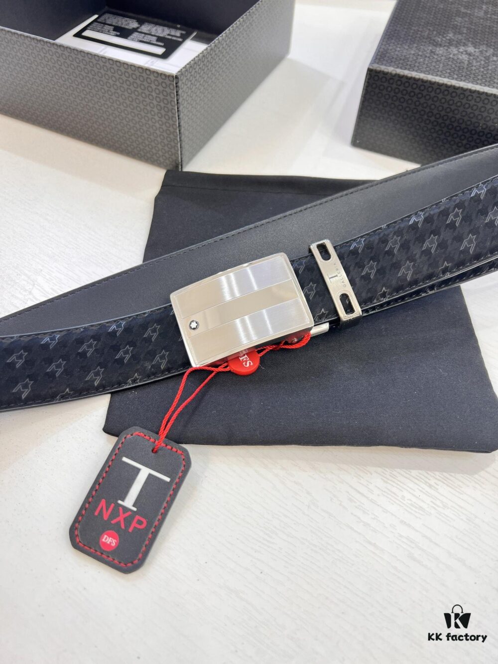 Top-Quality Original Leather Belt, Genuine Hong Kong Duty-Free T Gift Box (NXP Hangtag with Authenticity Chip Recognizable on Official Website), Montblanc Stainless Steel Hardware, Automatic Star Buckle Series, High-Ion Plating for Fade Resistance: Zegna
