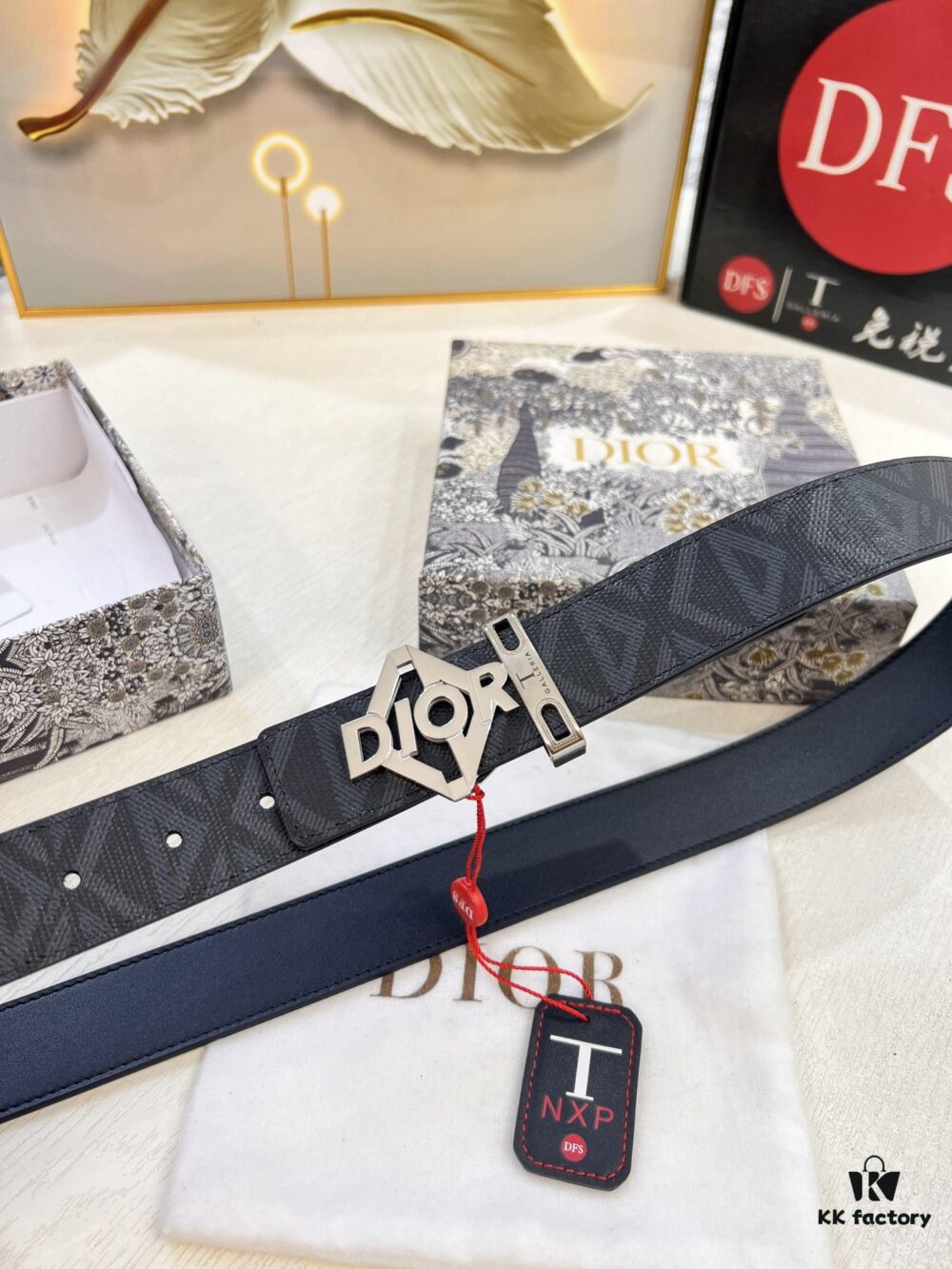 Dior D Belt, Hong Kong Duty-Free Gift Set (NXP RFID Tag with Official Website Verification, Authentic Anti-Counterfeit Chip)