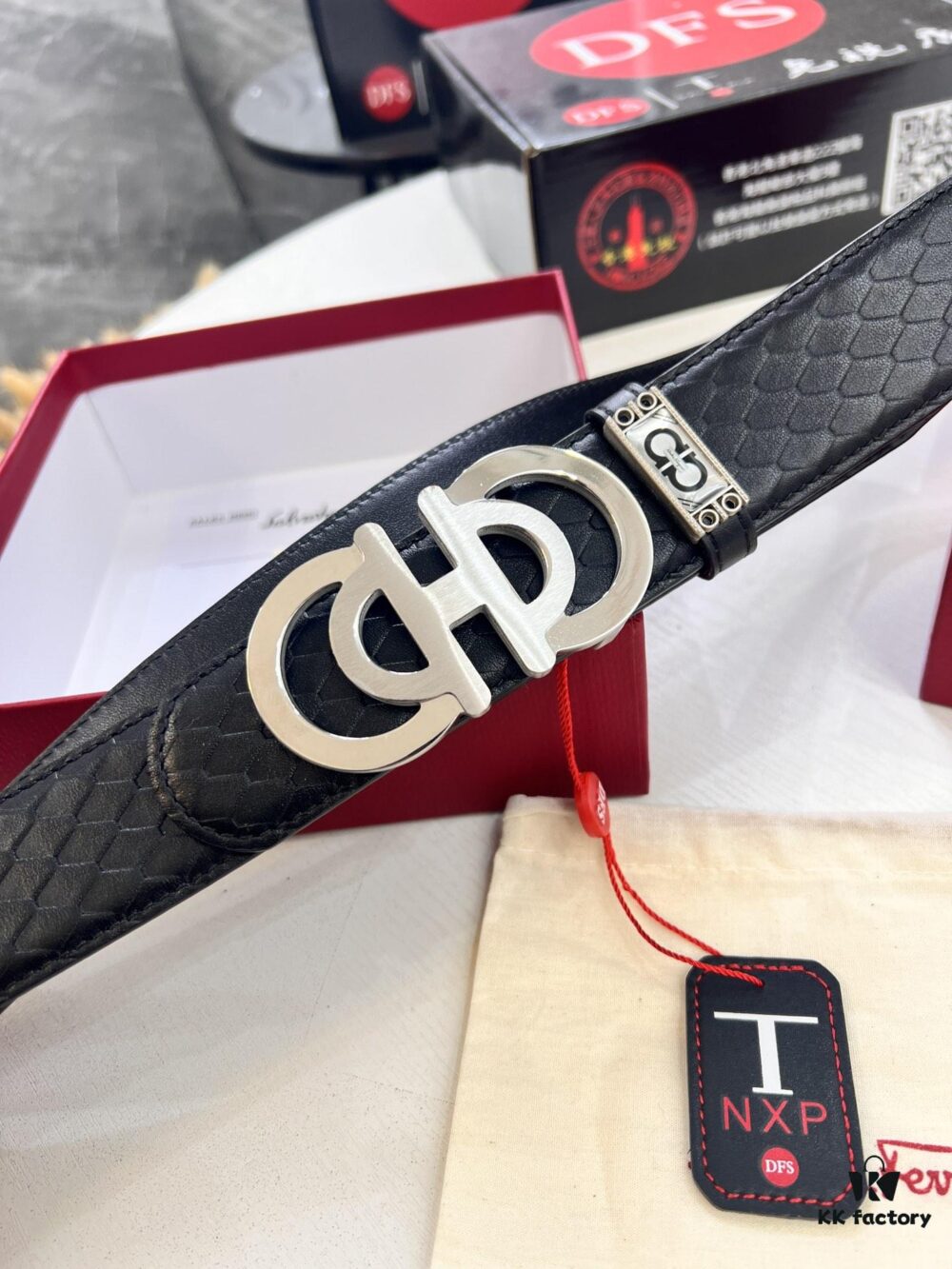 Top-tier Salvatore Ferragamo Men’s Belt, Original 8-Shaped Hardware, Genuine Python-Grain Full-Grain Cowhide Leather, German-Made Craftsmanship, NFC Chip (NXP), Adjustable Length, Hong Kong Duty-Free Gift Box, Anti-Counterfeit QR Authentication
