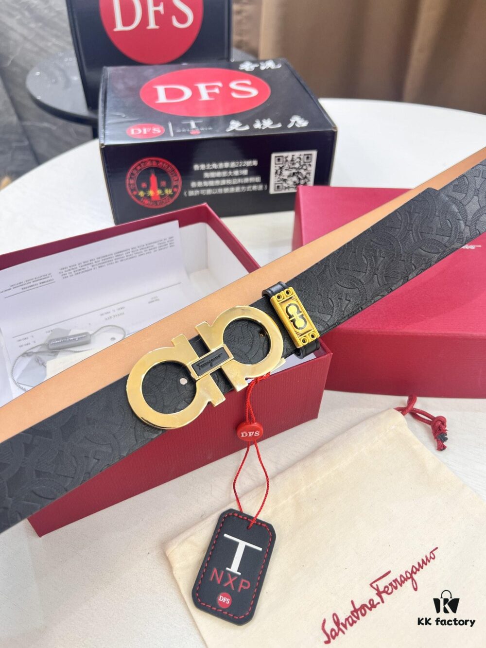 Salvatore Ferragamo Belt, Hong Kong Duty-Free Gift Box 🎁 (NXP RFID Tag with Official Website Verification, Authentic Anti-Counterfeit Chip)