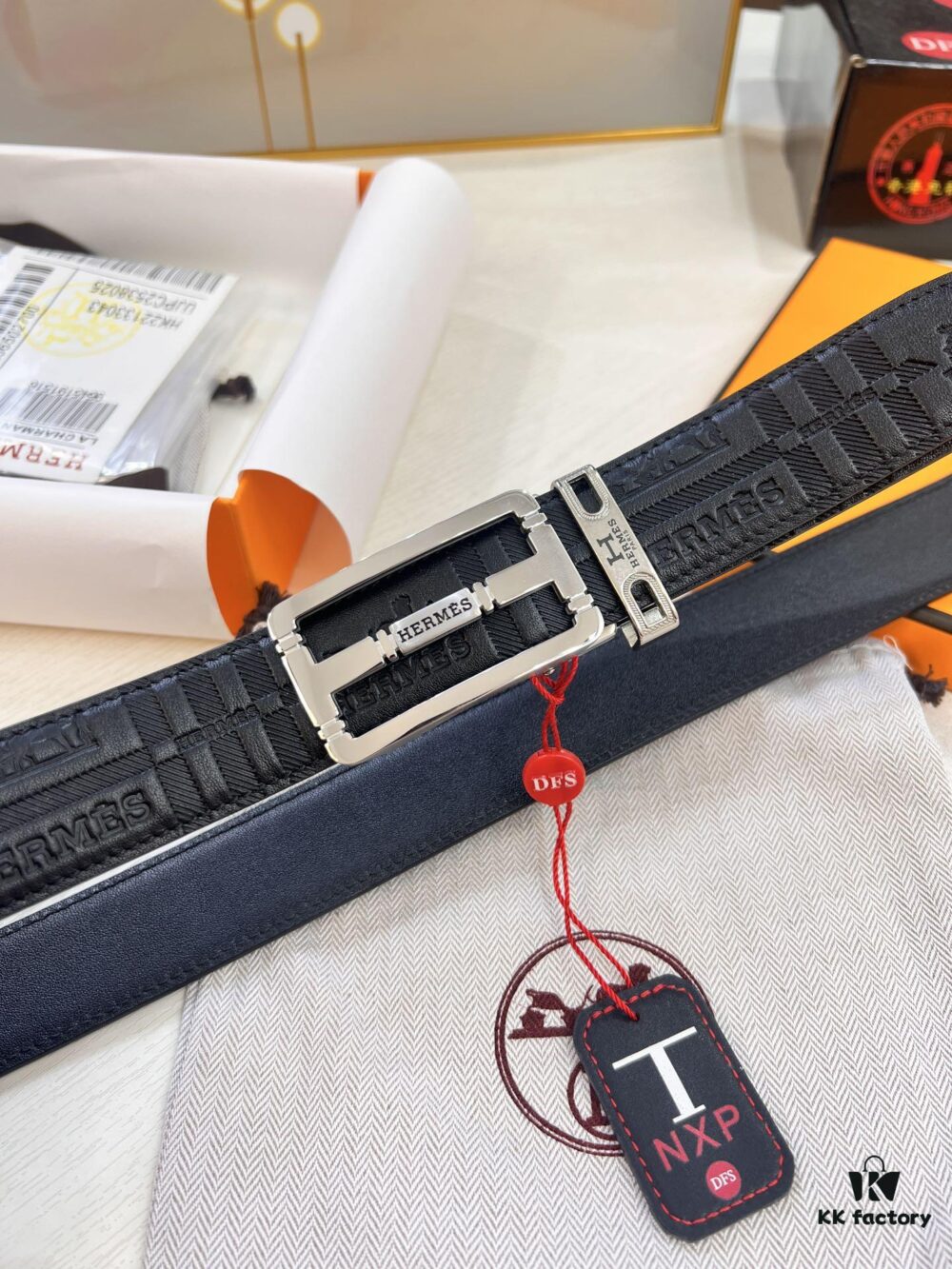 Hermès HH Original Factory Order Men’s Leather Belt – Italian Imported Top Grain Calfskin, Automatic Buckle, 3.5cm Width