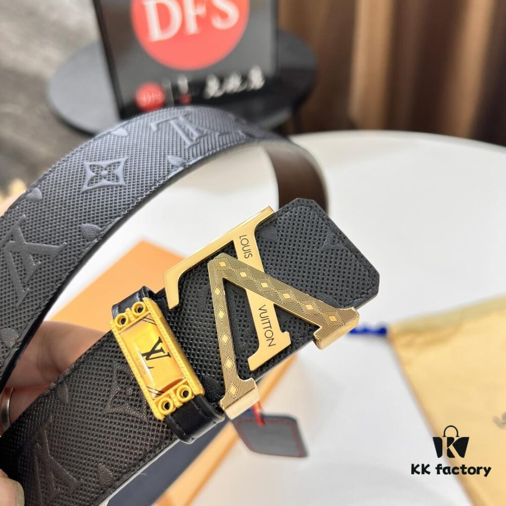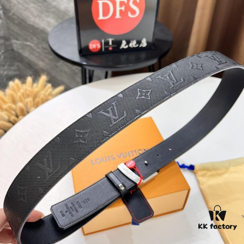 Original Factory Premium Hong Kong Tax-Free T Gift Box 🎁 (NXP RFID Tag with Verifiable Authentication), Belt with Louis Vuitton LV Buckle, Made of French Top-Grade Embossed Cowhide Leather, 3.8cm Width, High-Quality Stainless Steel Hardware with Corroded Pattern Design