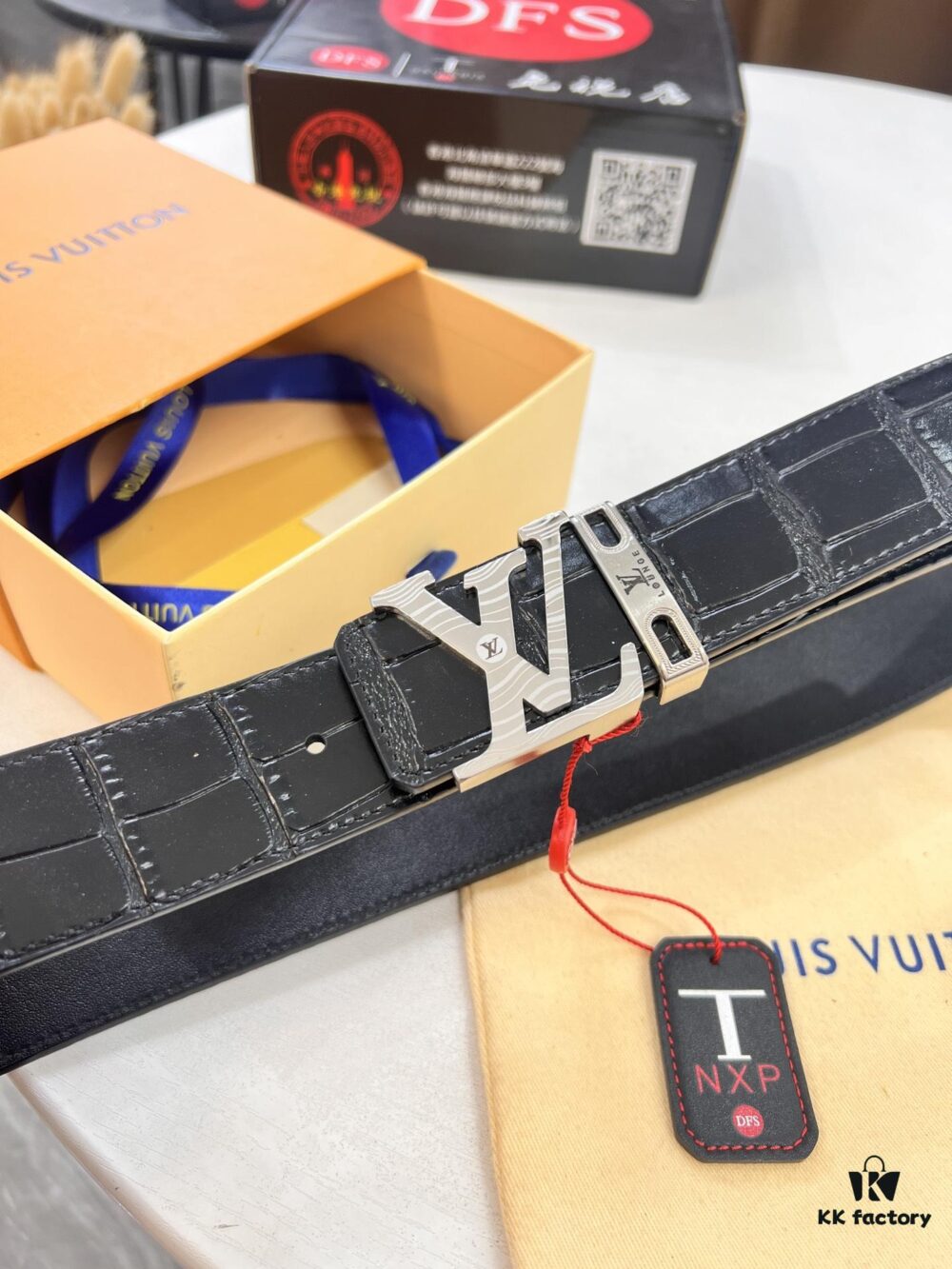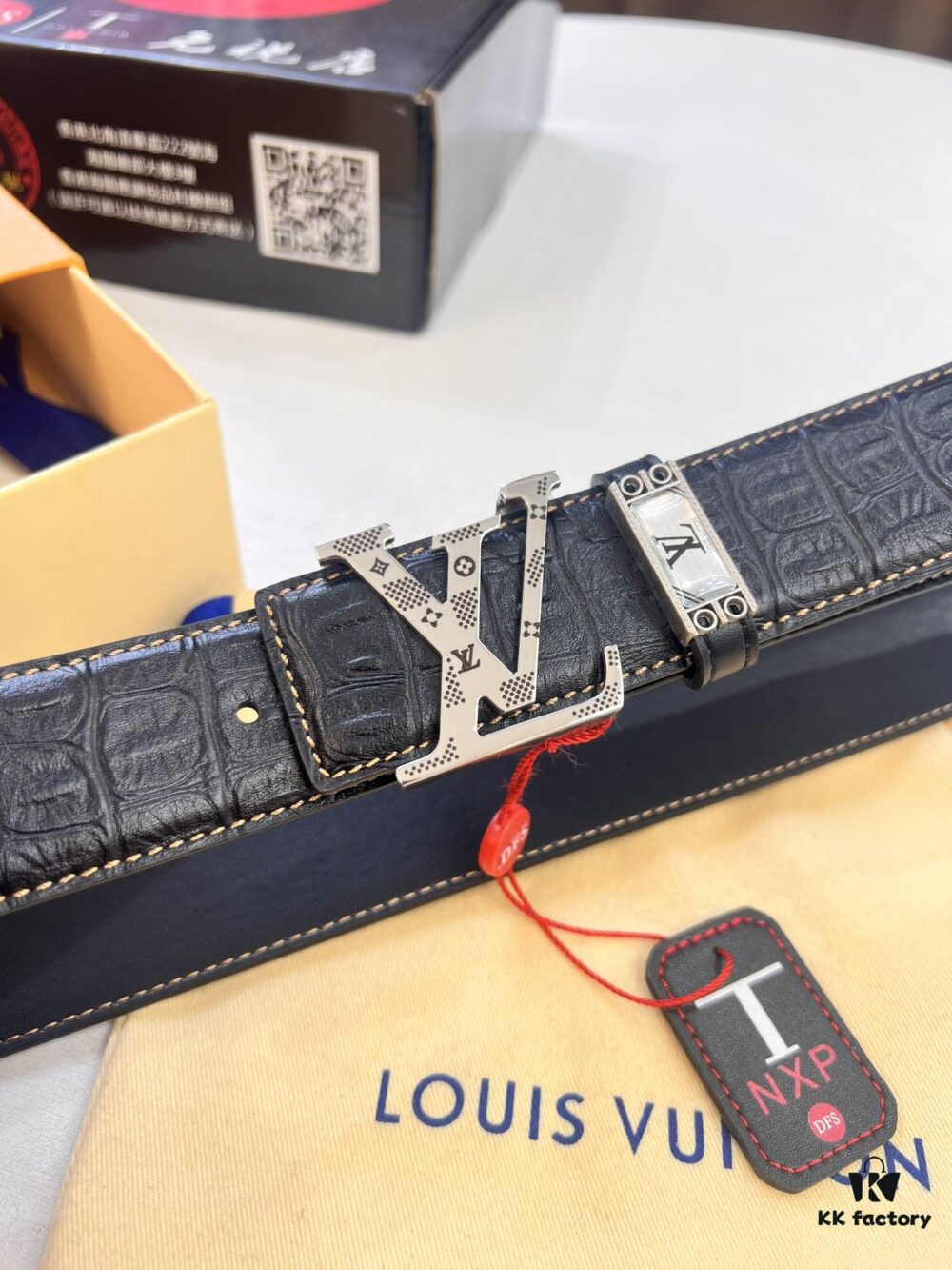 Top-Tier Louis Vuitton LV Belt – Genuine Crocodile-Texture Top Layer Calfskin, 3.8cm Width, Original Hong Kong Duty-Free Gift Box with NXP RFID Tag (Verifiable on Official Website)