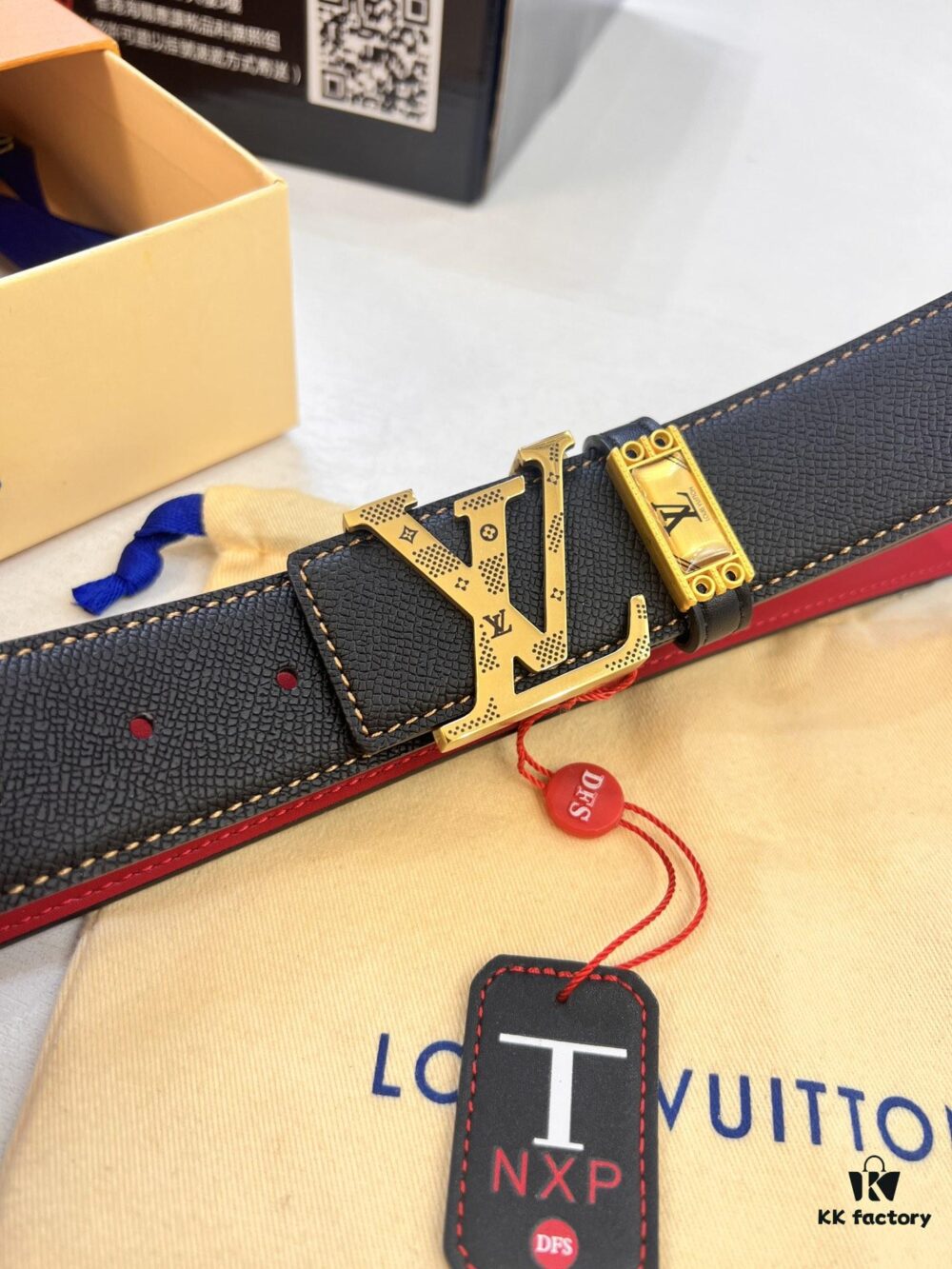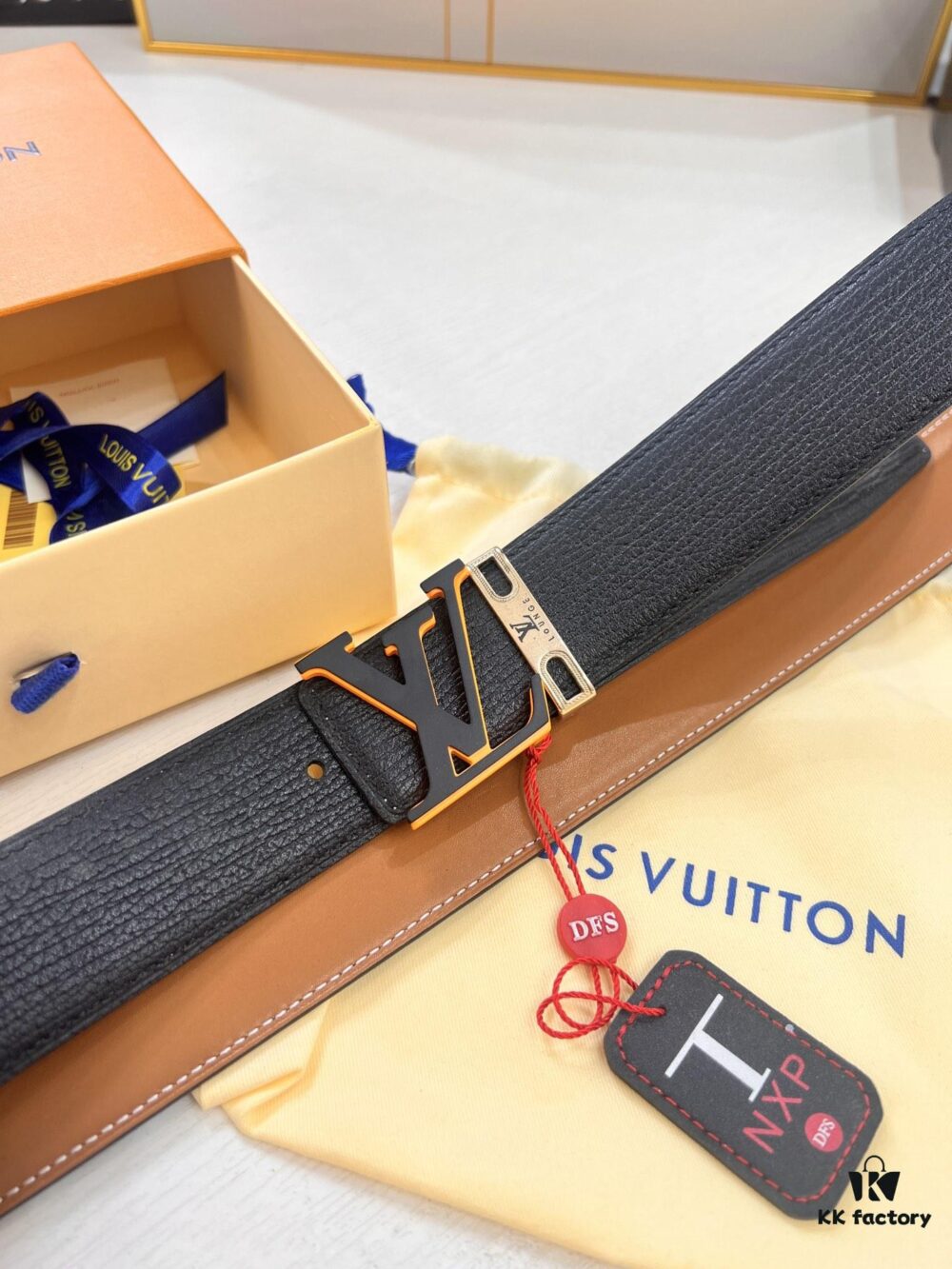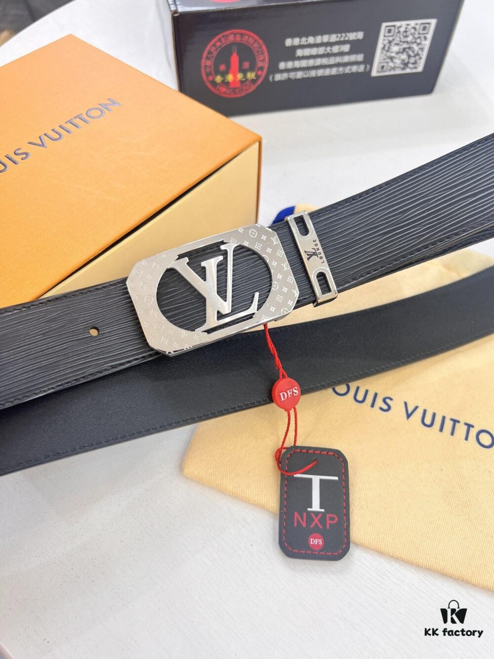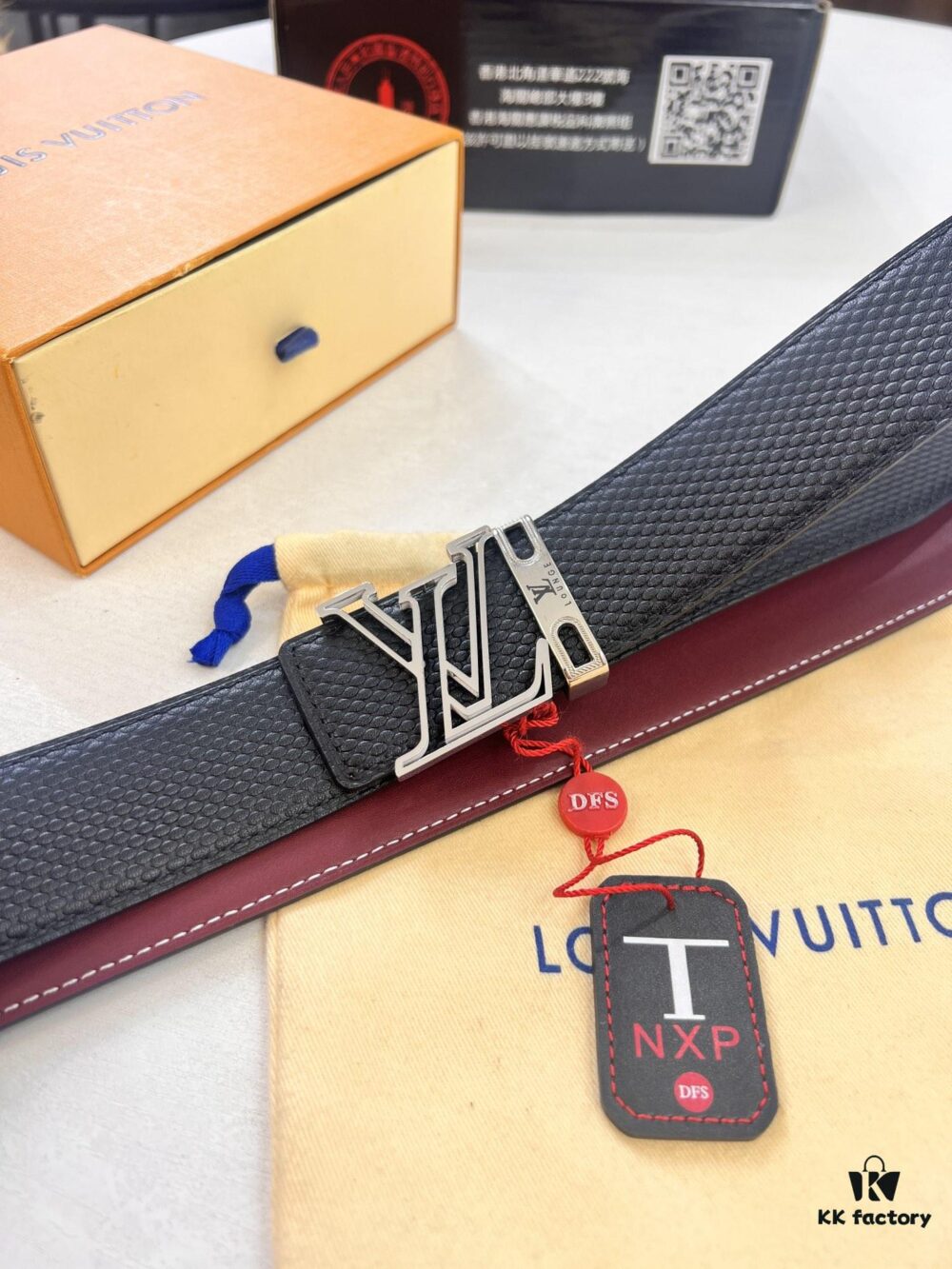 Top-Tier Leather Belt, Original Factory Premium Hong Kong Duty-Free T Gift Box (NXP RFID Tag with Website Verification, Authentic Anti-Counterfeit Chip), Genuine LV Louis Vuitton Style