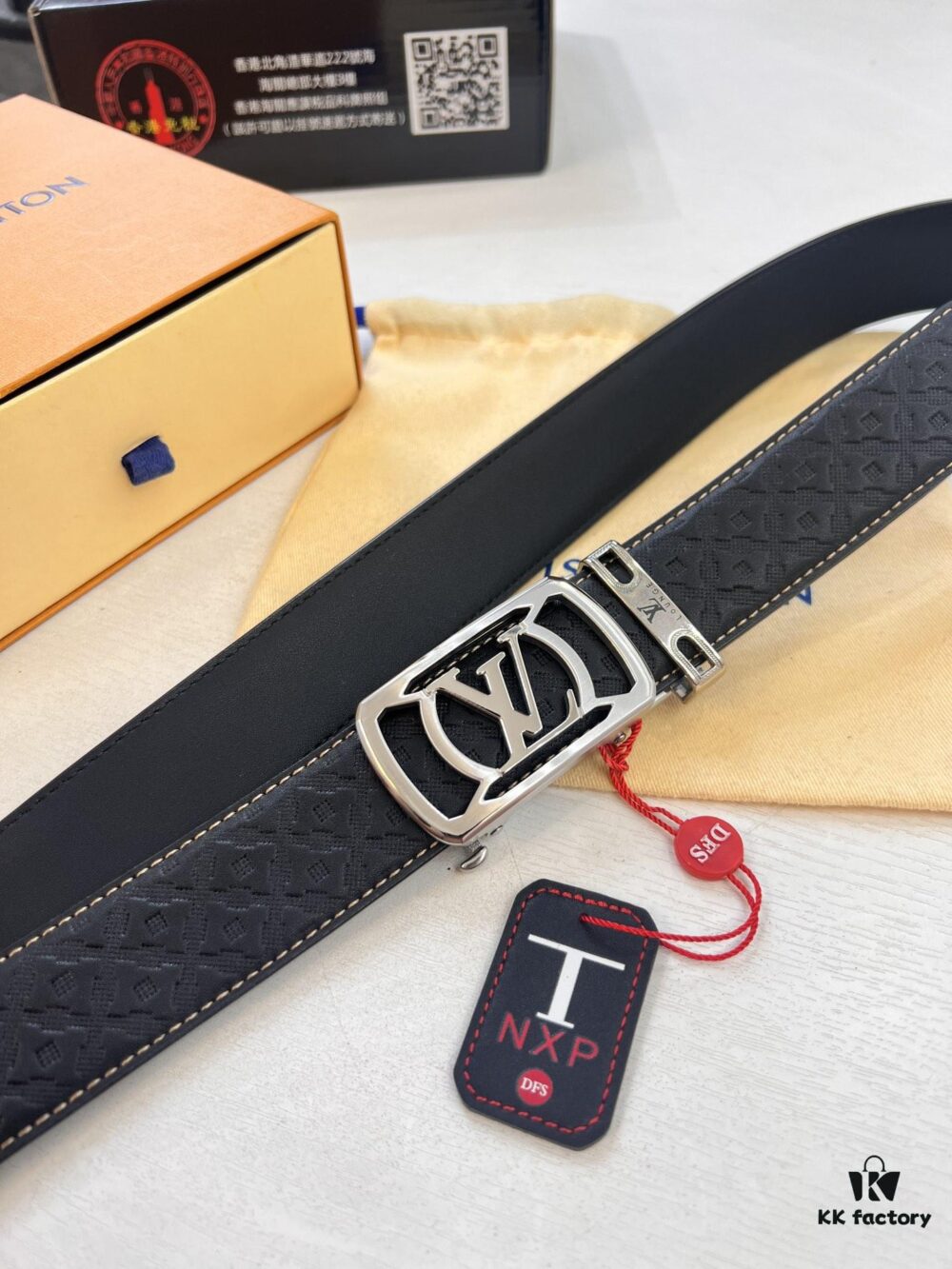 Louis Vuitton Automatic Buckle Belt, Full-Grain Imported Calfskin with Small Grain Cowhide, 3.5cm Width, Top-Quality Business Formal Belt