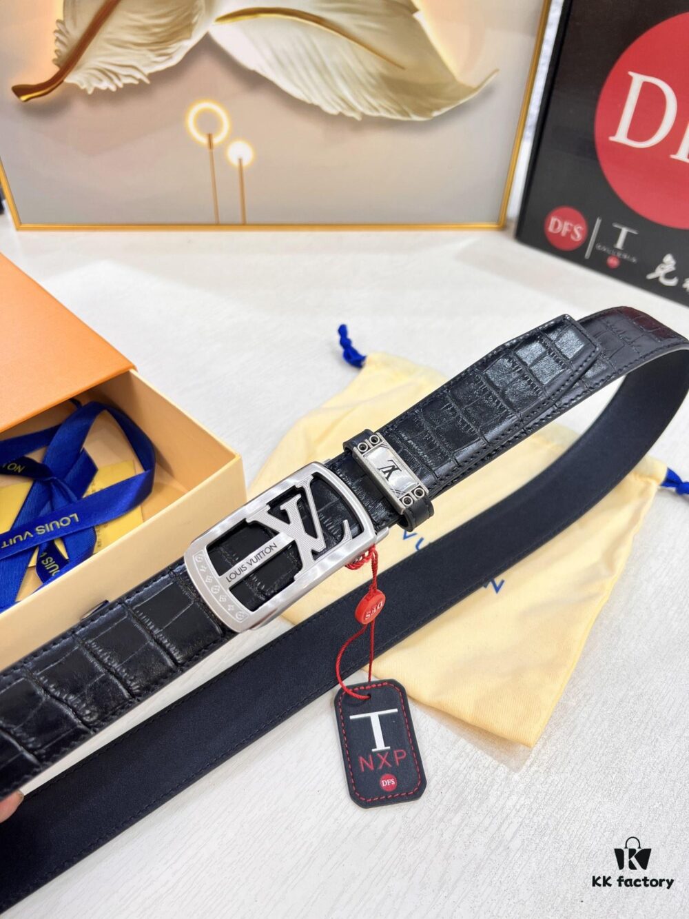 Louis Vuitton Automatic Buckle Belt, Genuine Crocodile-Textured Top-Layer Imported Leather, 3.5cm Width, Luxury Business Formal Belt with NXP Anti-Counterfeit Chip