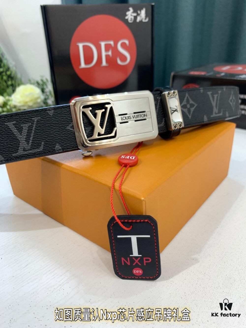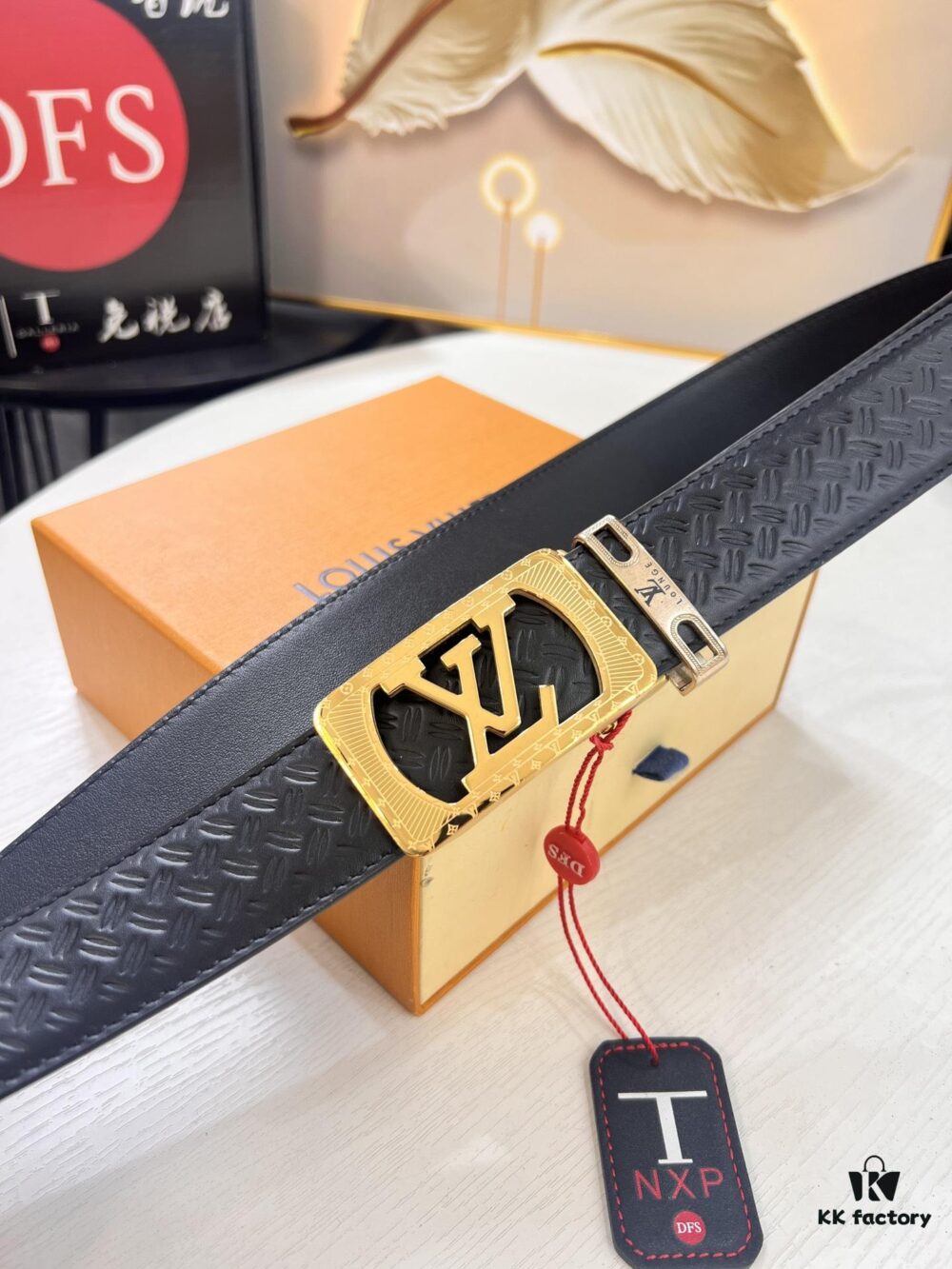 Louis Vuitton Automatic Buckle Belt, Premium Cowhide, Imported Top Layer Leather with Grid Pattern, Fine Grain Leather, 3.5cm Width, Top-Quality Business Formal Belt