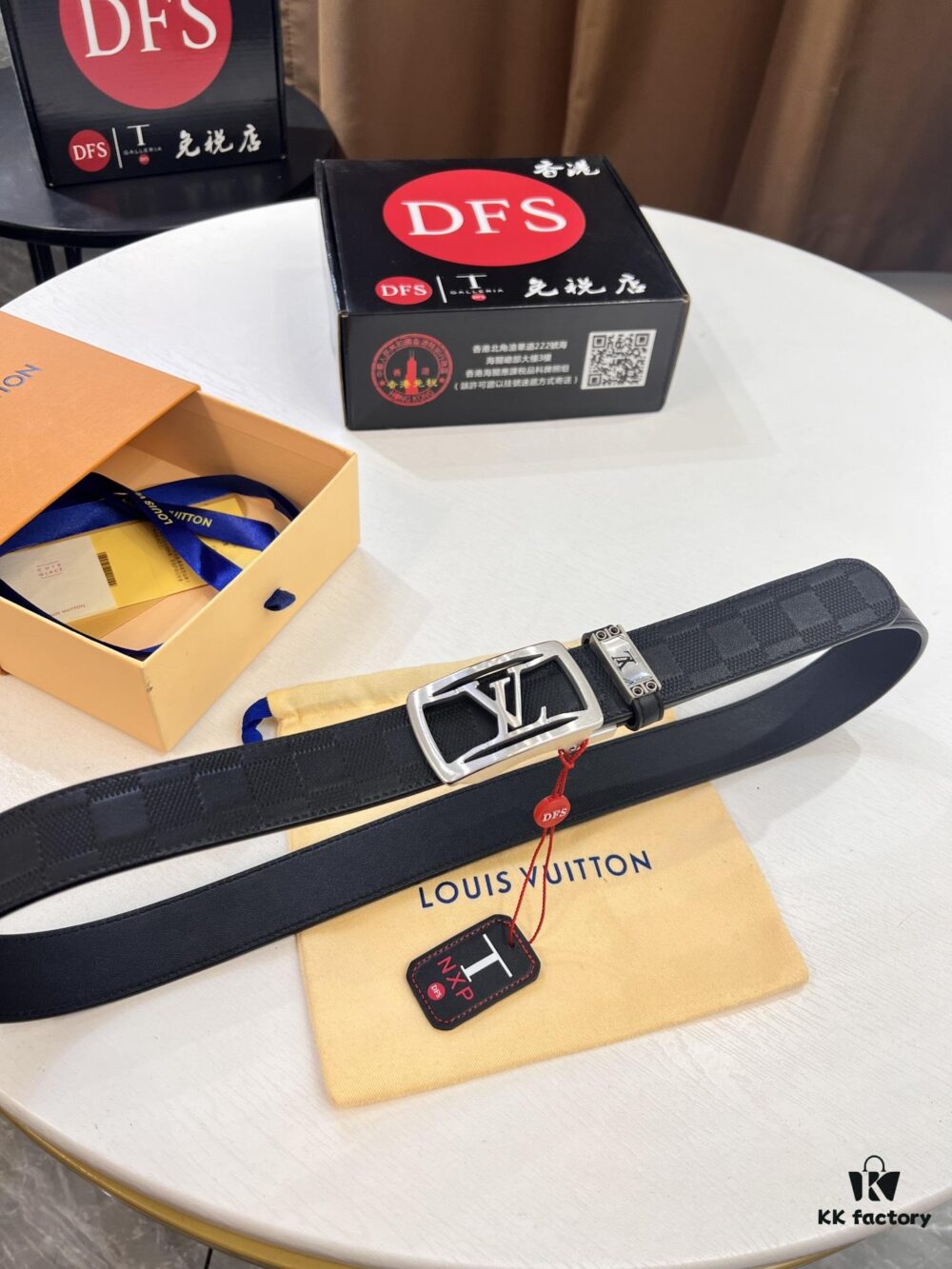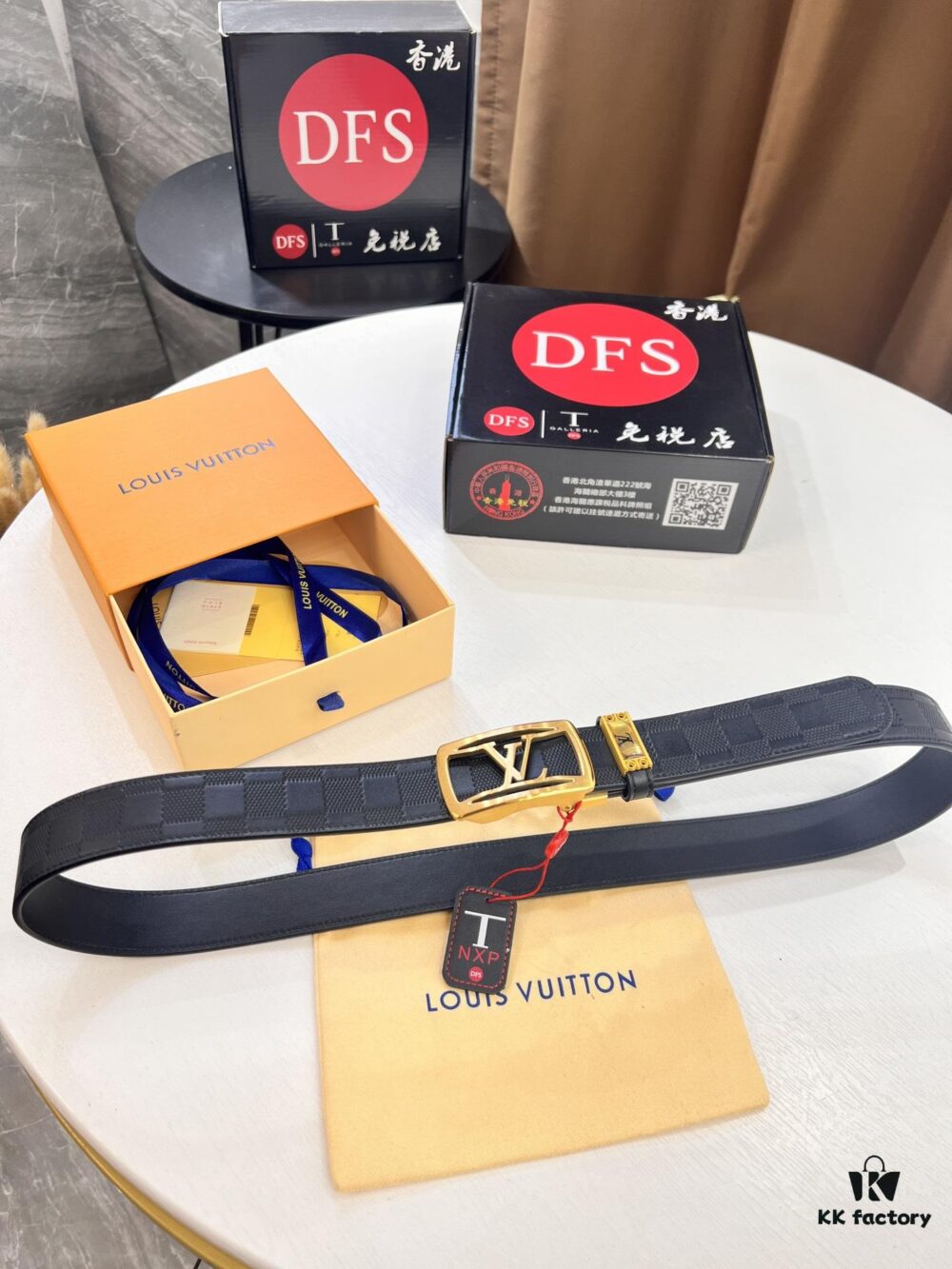 Louis Vuitton LV Belt – Top-Tier Genuine Leather with NXP RFID Chip, Hong Kong Duty-Free Gift Box, Embossed French Full-Grain Calfskin, 3.8cm Width