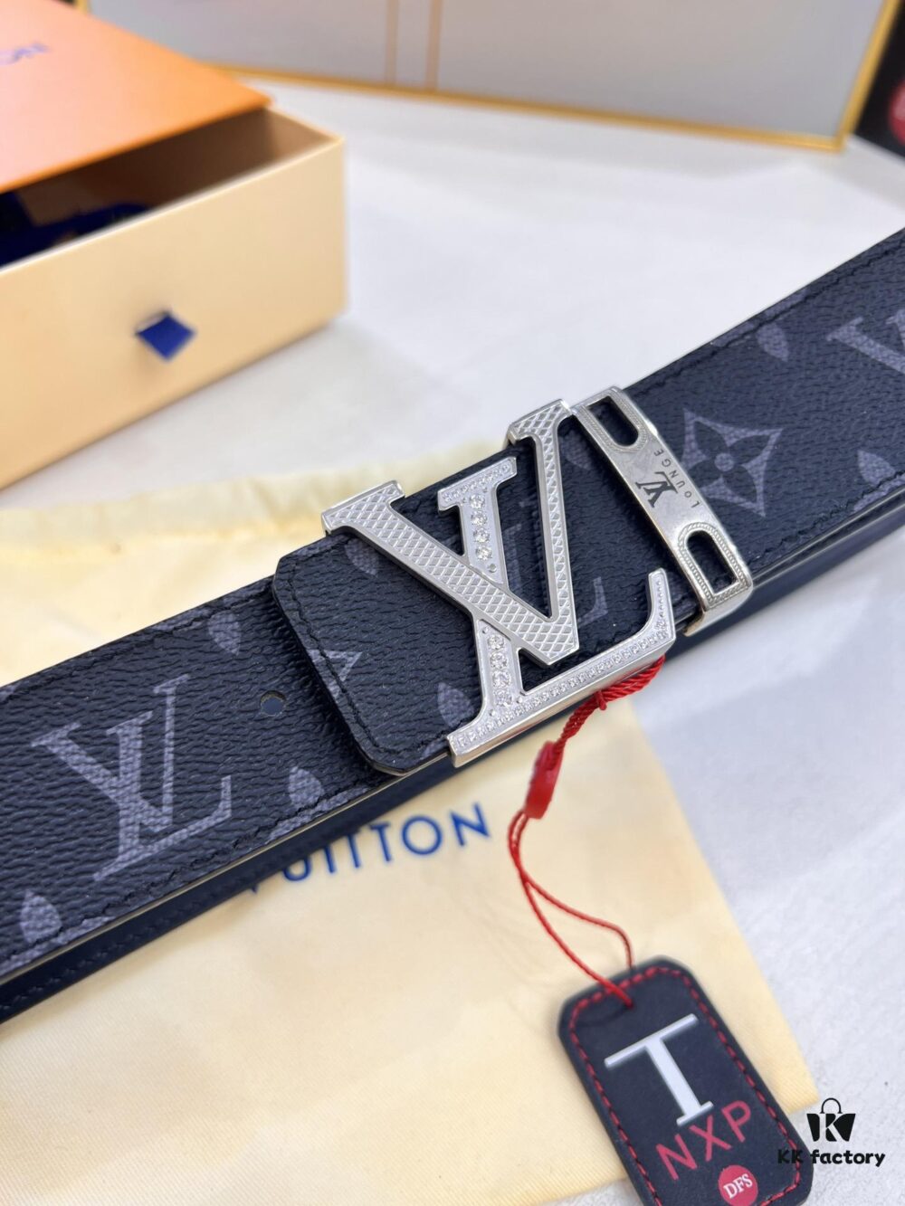 Louis Vuitton LV Belt, New Men’s Leather Belt with Monogram Pattern, Imported Fabric, Reversible Design, Diamond-Paved Letters, 3.8cm Width