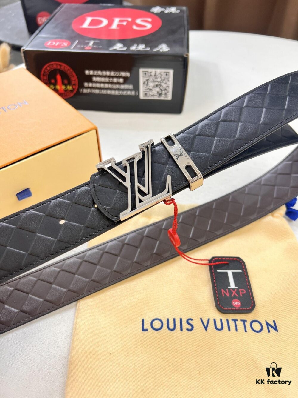LV Men’s Belt – Original Imported Woven Top-Layer Leather, New Style with Steel Hardware, Reversible Design