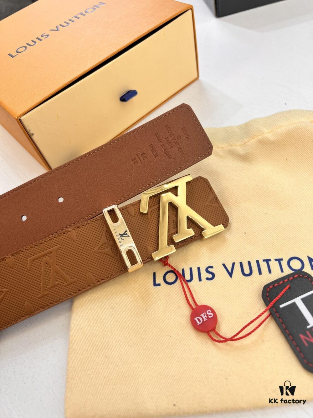 LV Men’s Belt, Imported Genuine First-Layer Cowhide, 3.8cm Width, Reversible Design, High-Quality Hardware, NXP Anti-Counterfeit Chip