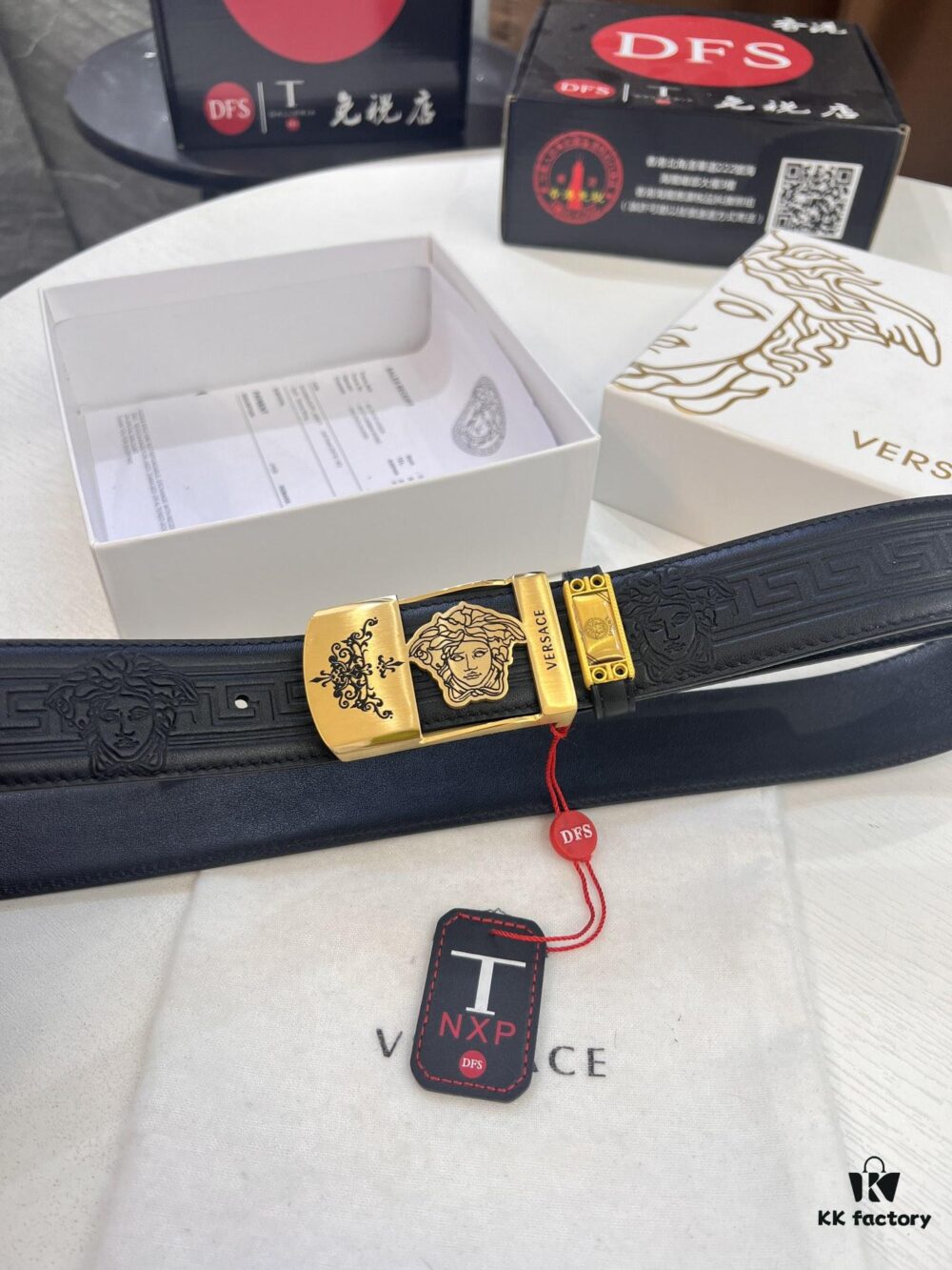 Versace Belt, New Style, Genuine Top Layer Cowhide with Medusa Head Embossing, Soft Leather, Fashion Streetwear Design, 3.8cm Width, Premium Quality with NXP Anti-Counterfeit Chip