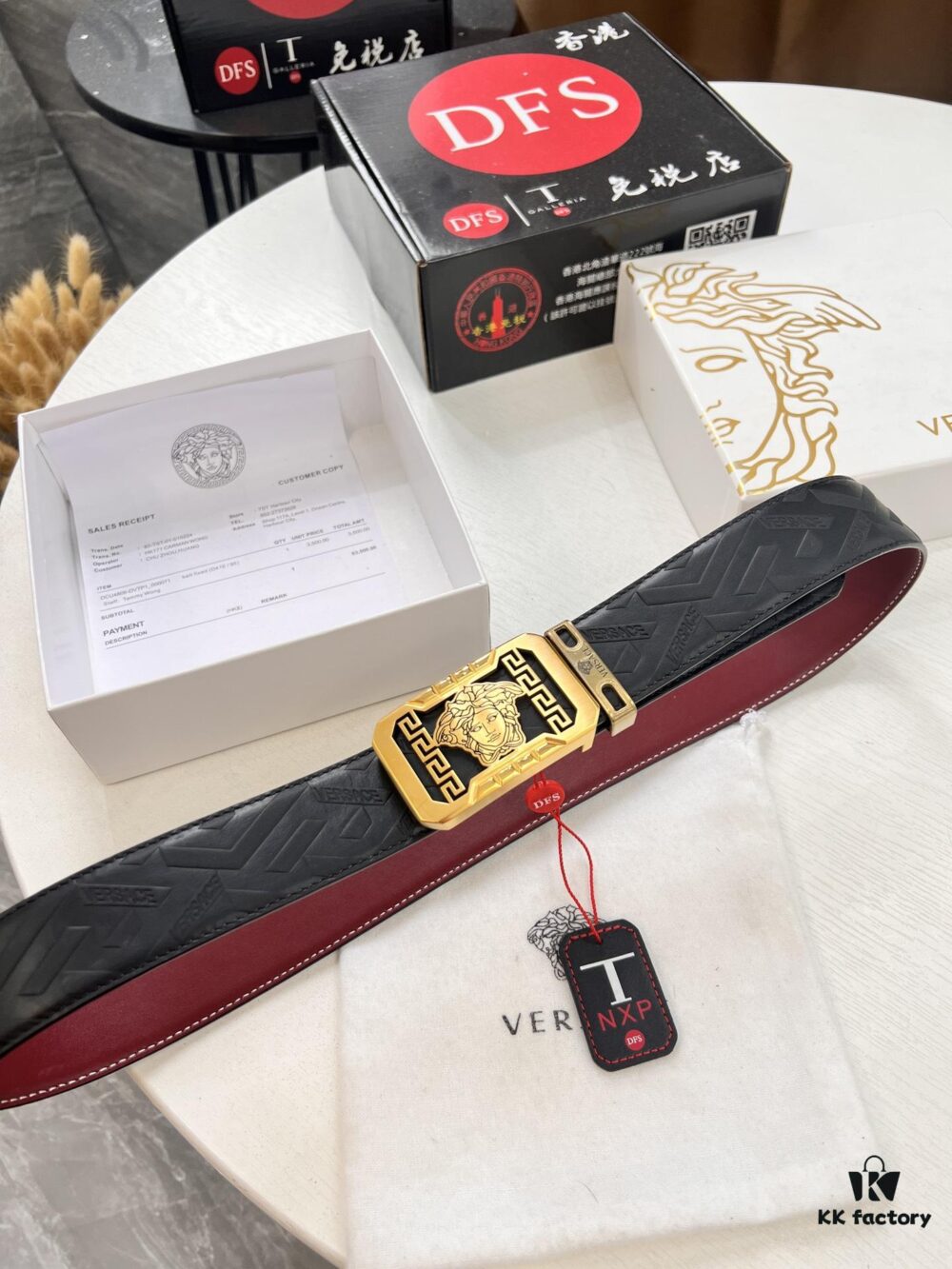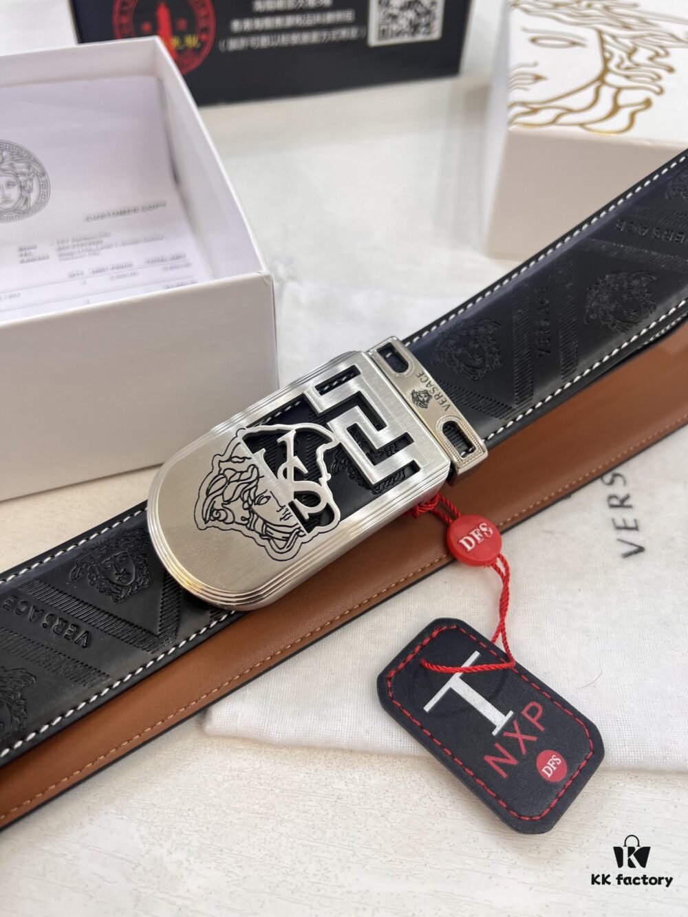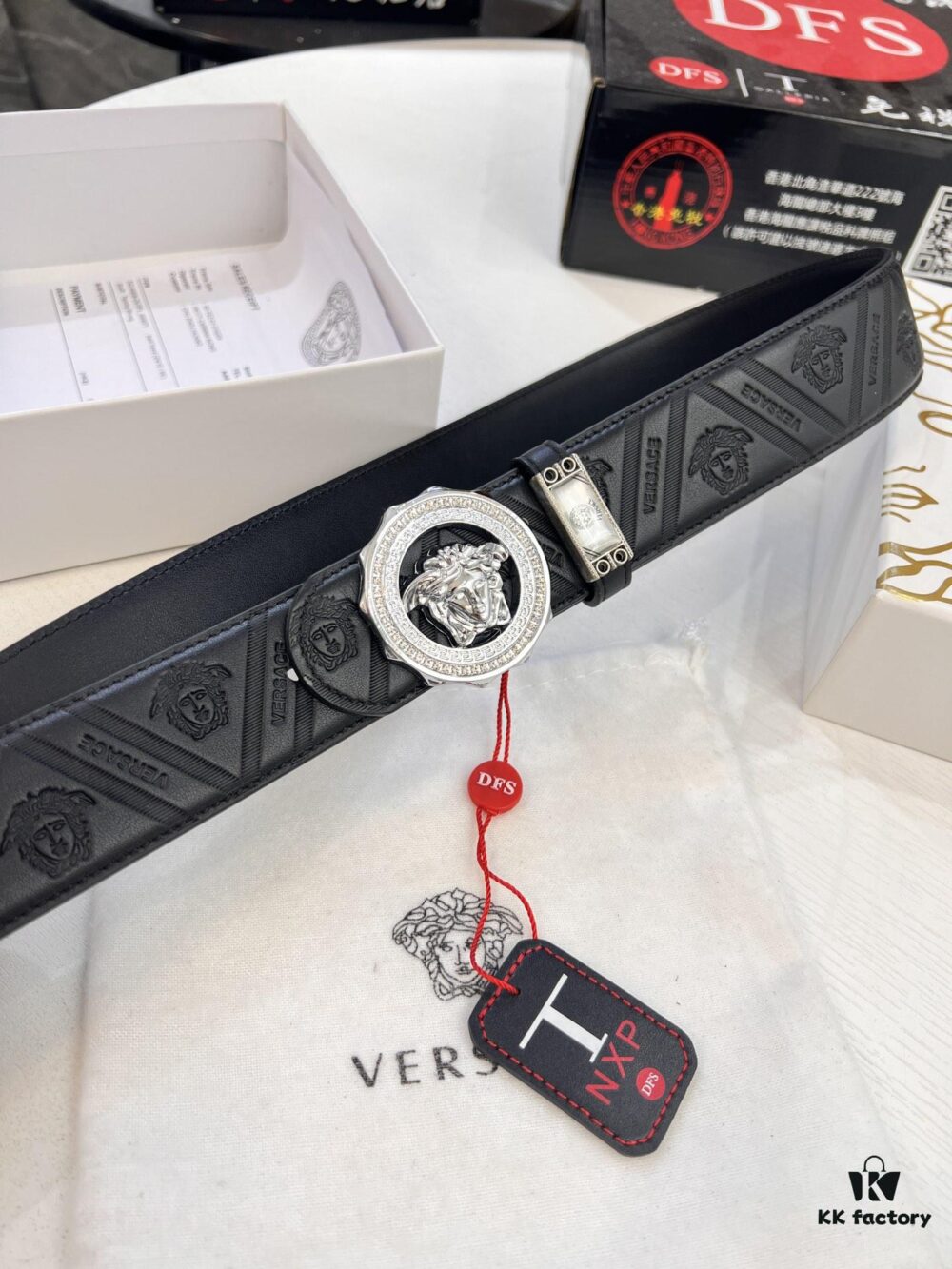 Versace Medusa Belt – Original Factory Order, Genuine Italian Top Grain Calfskin Leather, 3.8cm Width, Hong Kong Duty-Free Gift Box with NXP RFID Anti-Counterfeit Chip