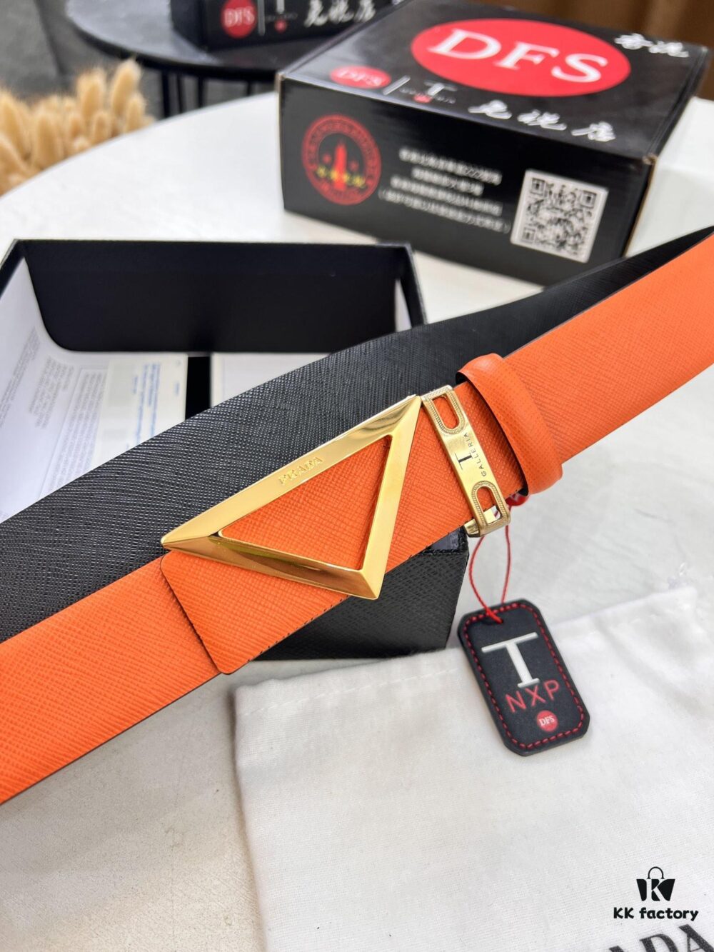 Prada-Inspired V Belt, Hong Kong Duty-Free Gift Box (NXP RFID Tag Detectable on Official Website, Authentic Anti-Counterfeit Chip)