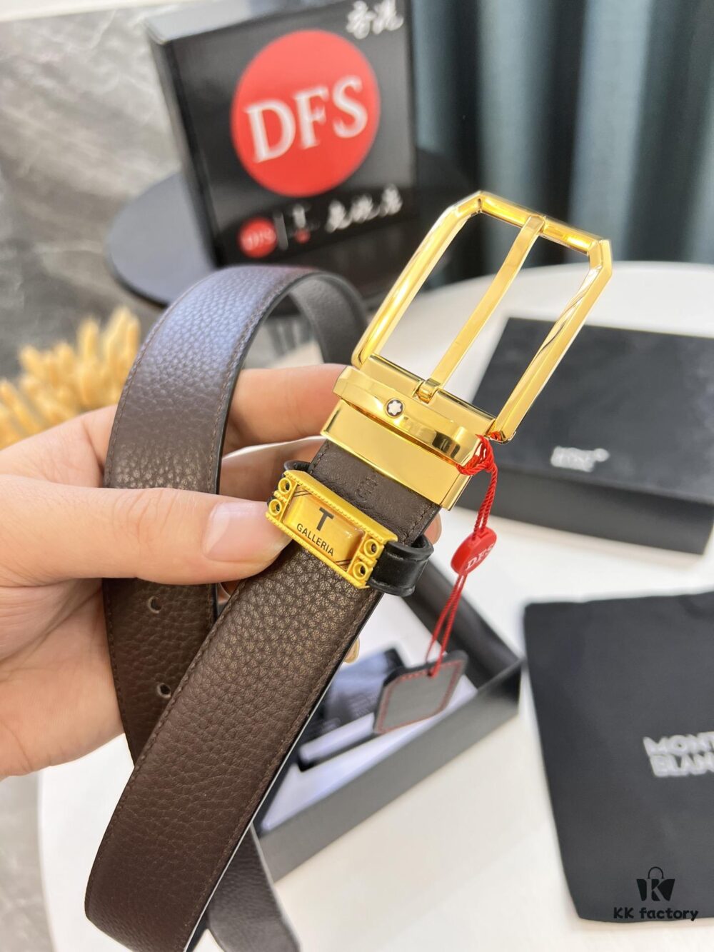 Montblanc Men’s Leather Belt 2023 Newest Model Top-Quality Full-Grain Cowhide with Custom Lychee Texture and Brushed Stainless Steel Pin Buckle
