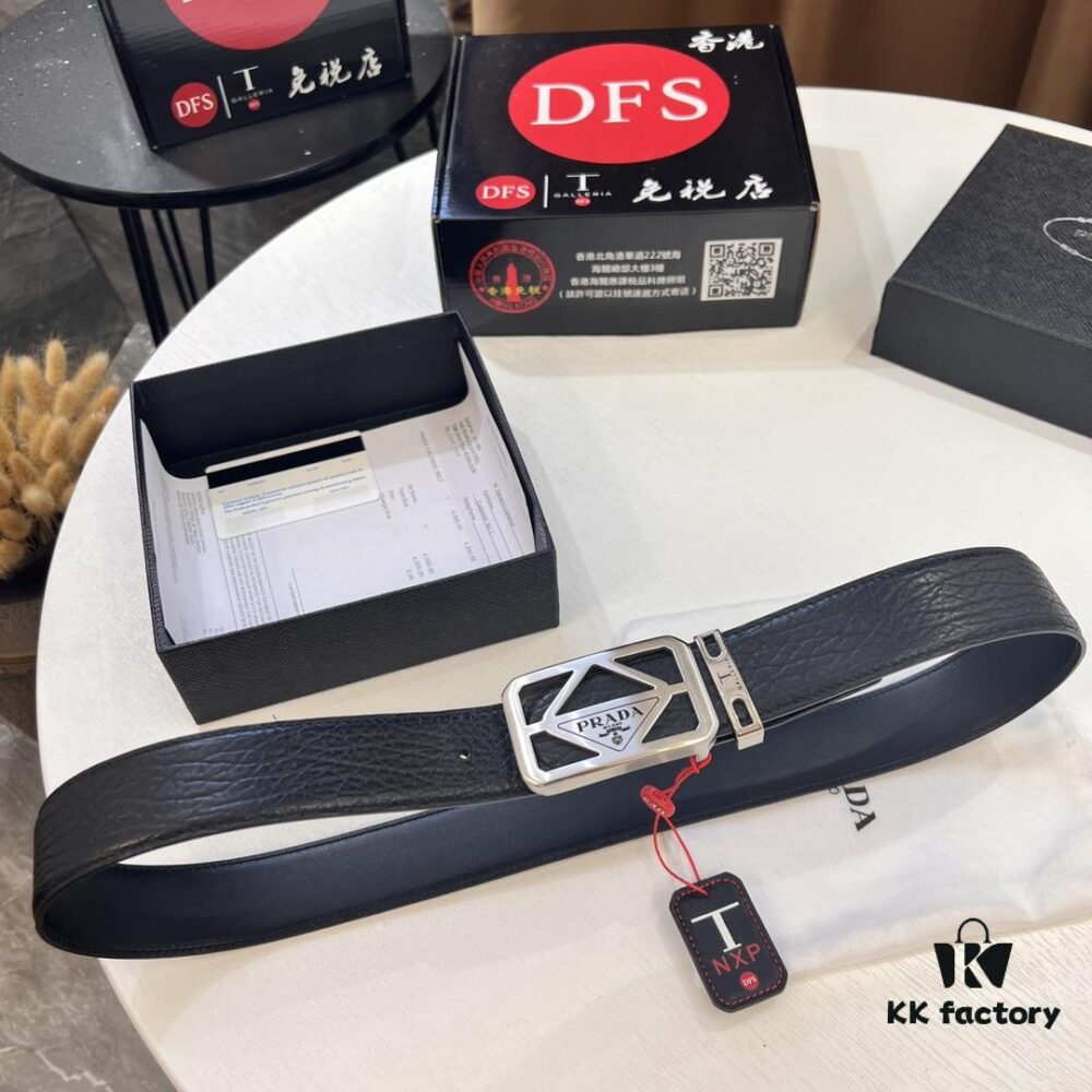 Prada Hong Kong Duty-Free Gift Box Genuine Authentication, South African Elephant Grain Calfskin Belt, 3.8cm Width, Original Order Quality
