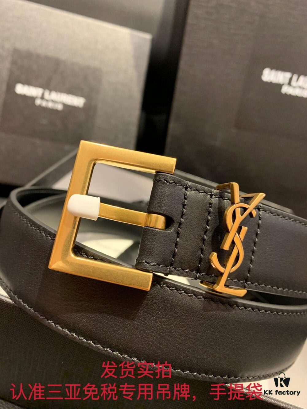 Authentic YSL Leather Belt with Needle Buckle, 3.0 cm Width, Full-Grain Calfskin, Premium Antique Brass Hardware