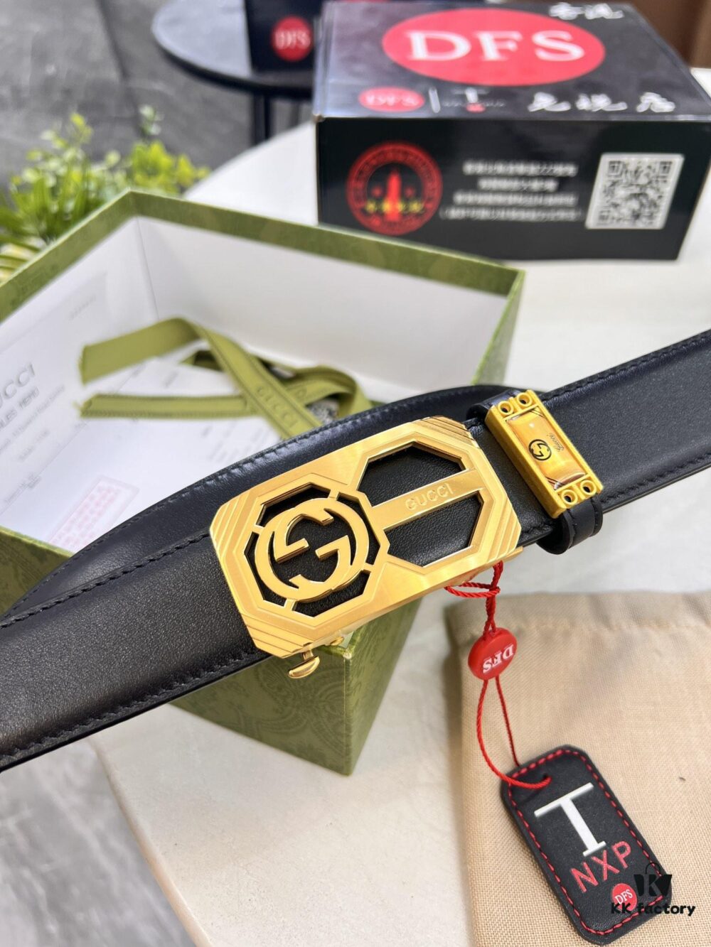 Gucci Automatic Buckle Belt, Embossed Full-Grain Cowhide, 3.5cm Width, Top-Quality Business Formal Belt with NXP Anti-Counterfeit Chip