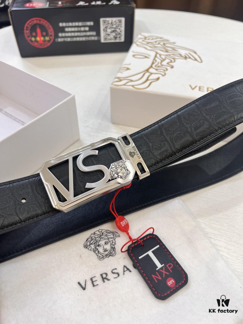 Versace New Arrival Belt, Top-Quality Genuine Leather with Medusa Head Embossing, Double-Sided Wearable Fashion Design, 3.8cm Width, Stainless Steel Hardware