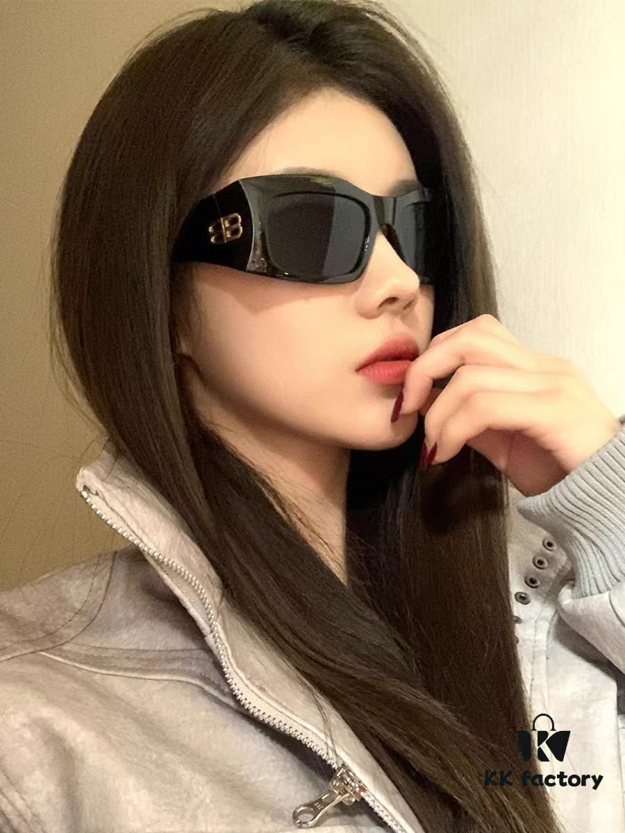 Balenciaga Black Sunglasses Double B Streetwear Style Women’s Summer Sun Glasses Ins 2024 New Arrival Hip-Hop Retro Fashion High-End UV Protection Eyewear