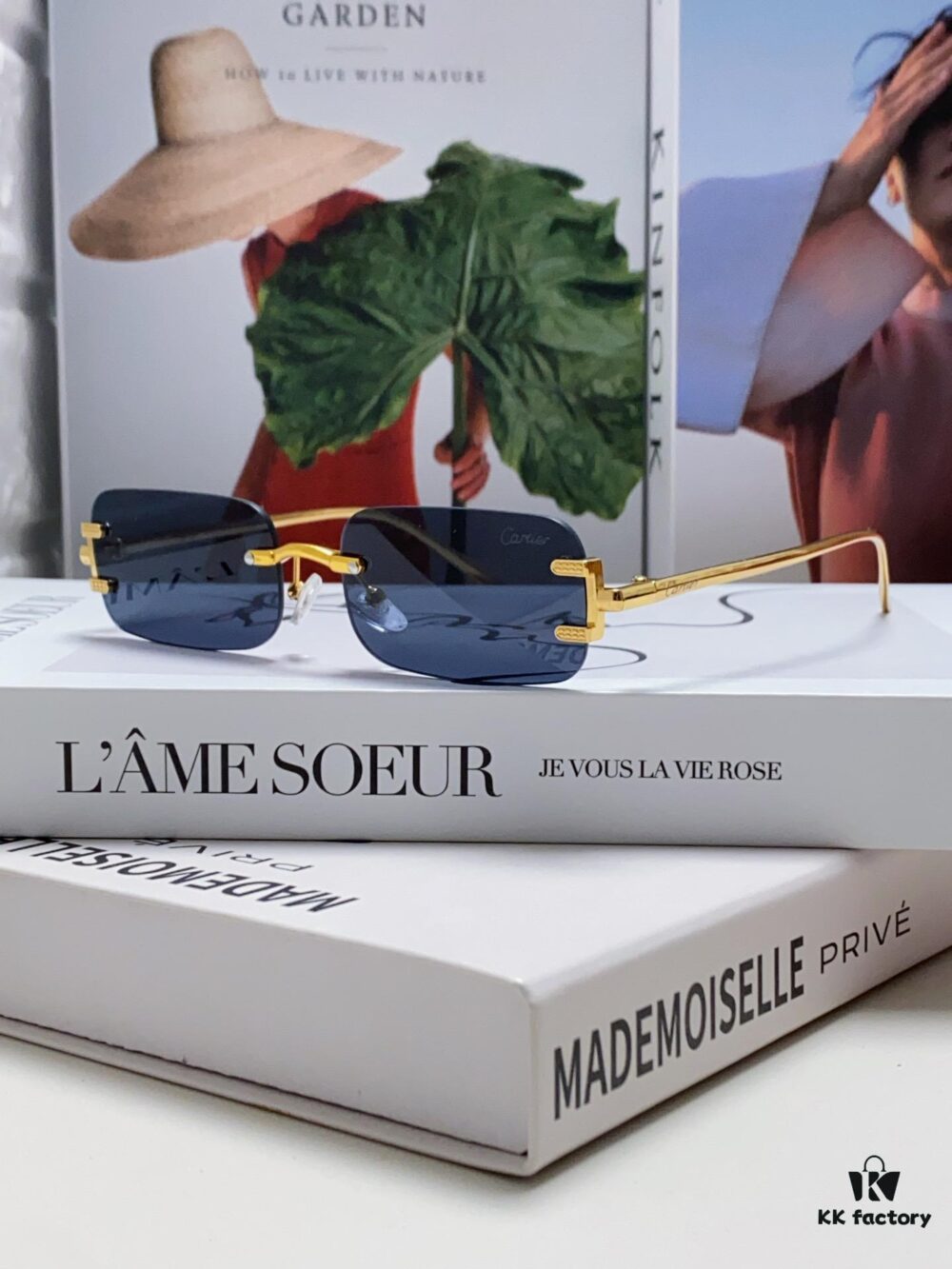 Cartier 2024 New Square Frameless Cut-Out Sunglasses for Women, Slimming, Fashionable European-American Style, Instagram-Worthy Street Snap Cool Sunglasses, Stylish Small Eyewear