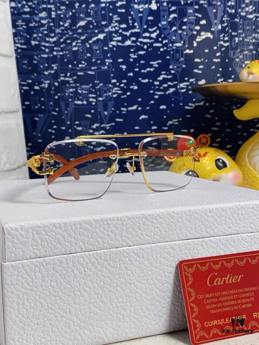 Cartier 2025 New Fashion Rimless Sunglasses with Unique Leopard Print and Woodgrain Temples, Square Frame Unisex Eyewear