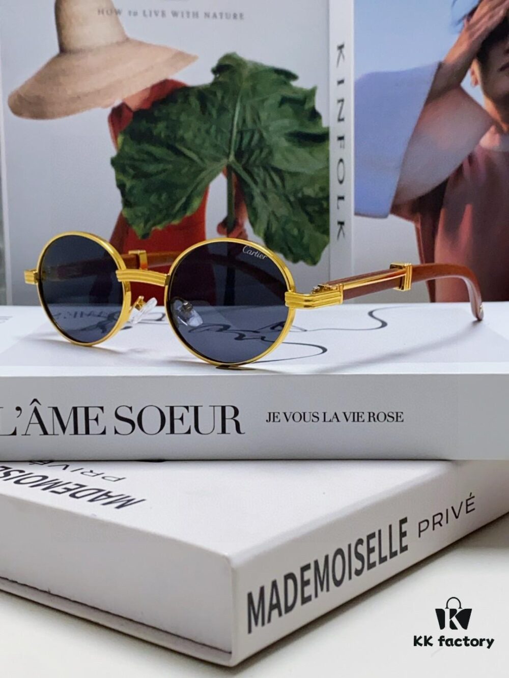 Cartier 2025 New Vintage Style Wooden-Look Round Sunglasses, Fashion UV-Protective Unisex Sun Glasses CT0464S