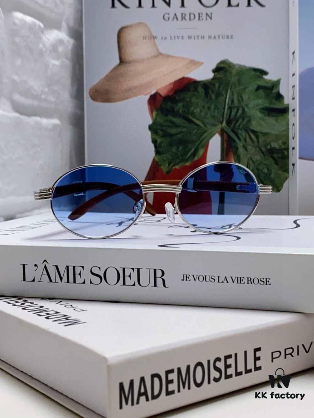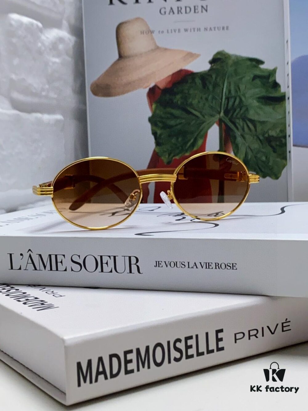 Cartier 2025 New Vintage-Style Wood-Grain Aviator Round Sunglasses, Fashionable UV-Protective Unisex Sun Glasses CT0464S
