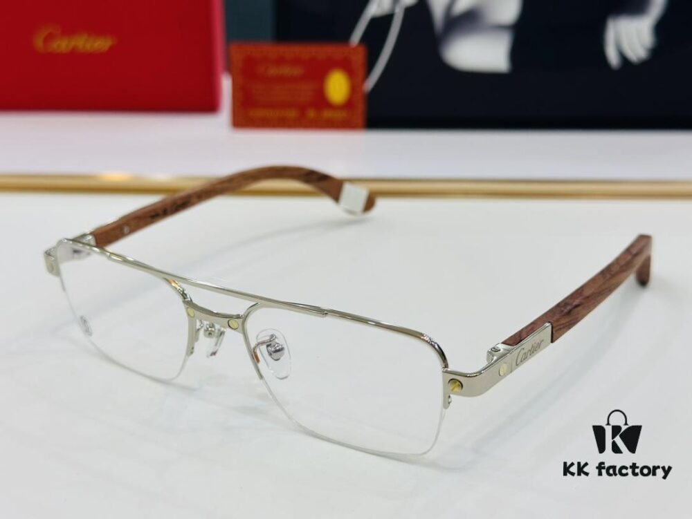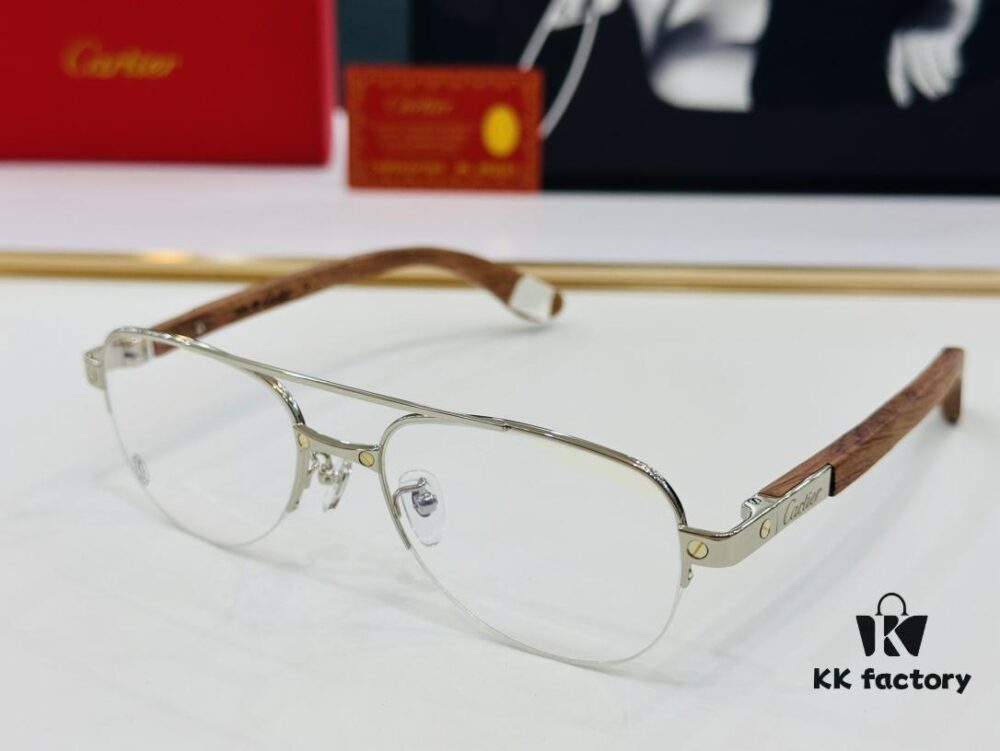 Cartier CT0286 Men’s Eyeglasses – Size 54 □ 17-140, Universal Frame Shape for All Face Types, Comfortable Fit, Compatible with Prescription Lenses, Wooden Temples, Suitable as Sunglasses
