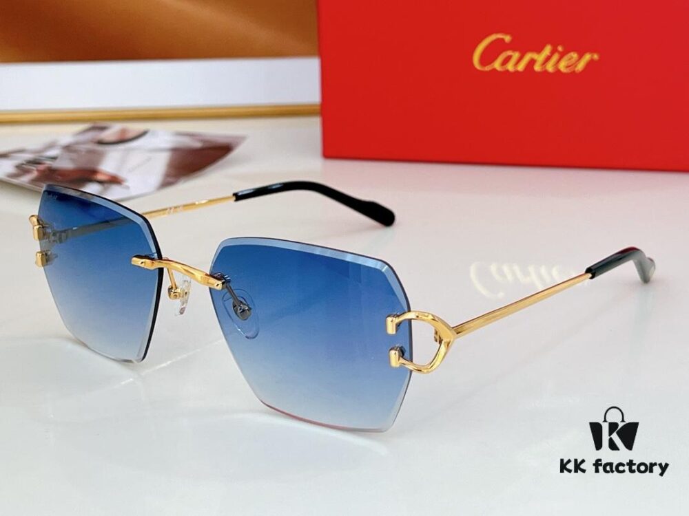 Cartier European and American Style Square Frameless Cut-edge Sunglasses for Women, Fashionable and Elegant Street Snap Slimming Minimalist Sunglasses