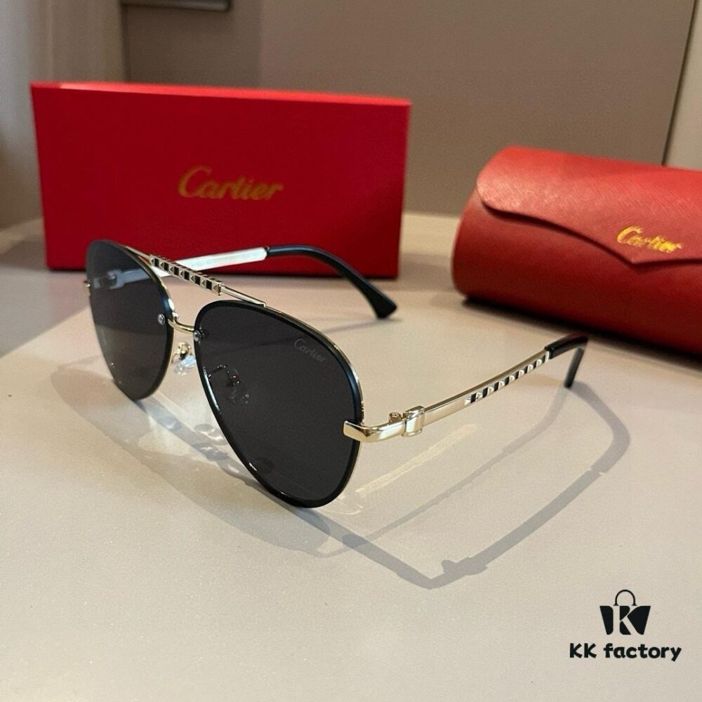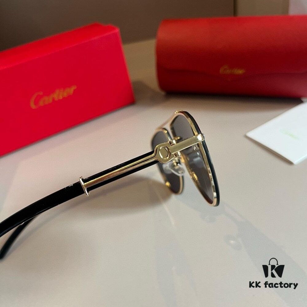 Cartier Men’s 1:1 High-End Aviator Sunglasses, Elegant and Luxurious with Minimalist Signature Logo on Temples