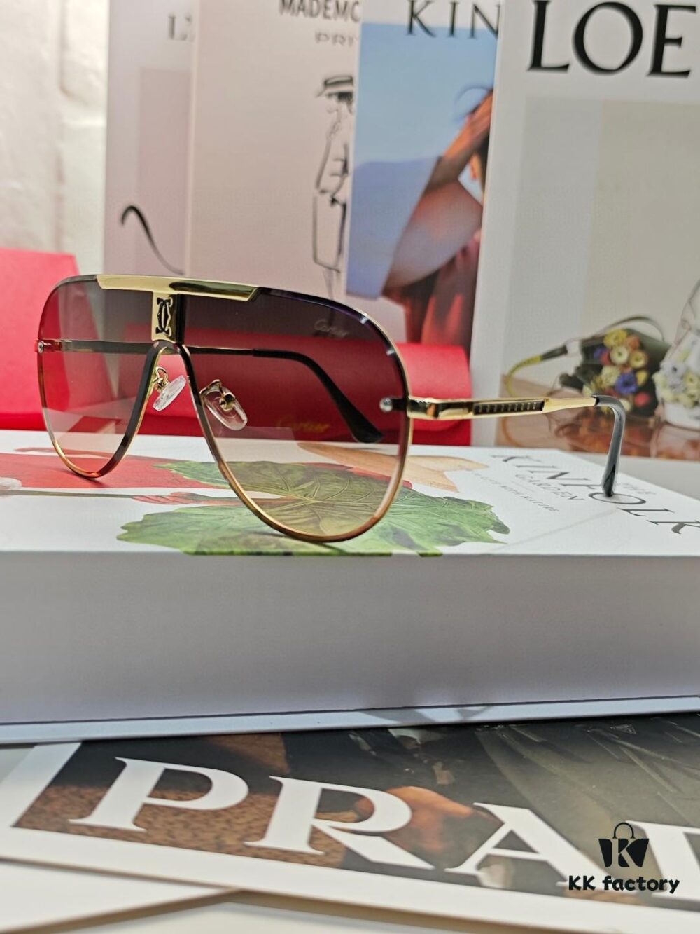 Cartier Men’s Sunglasses, 1:1 Replica of Official Website Frog-Style Glasses, High-End and Elegant, Featuring Minimalist Signature Logo on Temples, Luxuriously Crafted