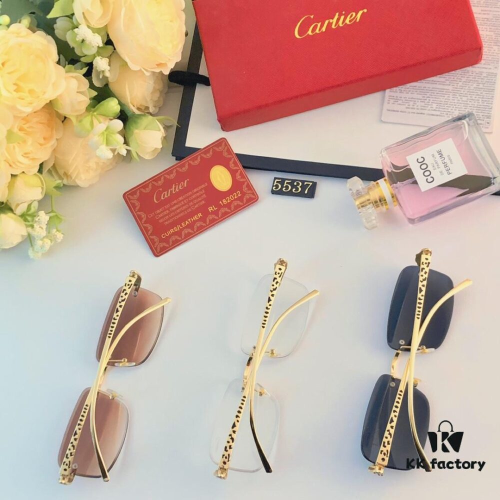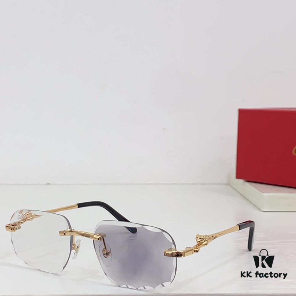 Cartier Panther Decorated Frameless Cut-edge Square Sunglasses Unisex Retro Leopard Head Metal Sunglasses Cross-border Eyewear