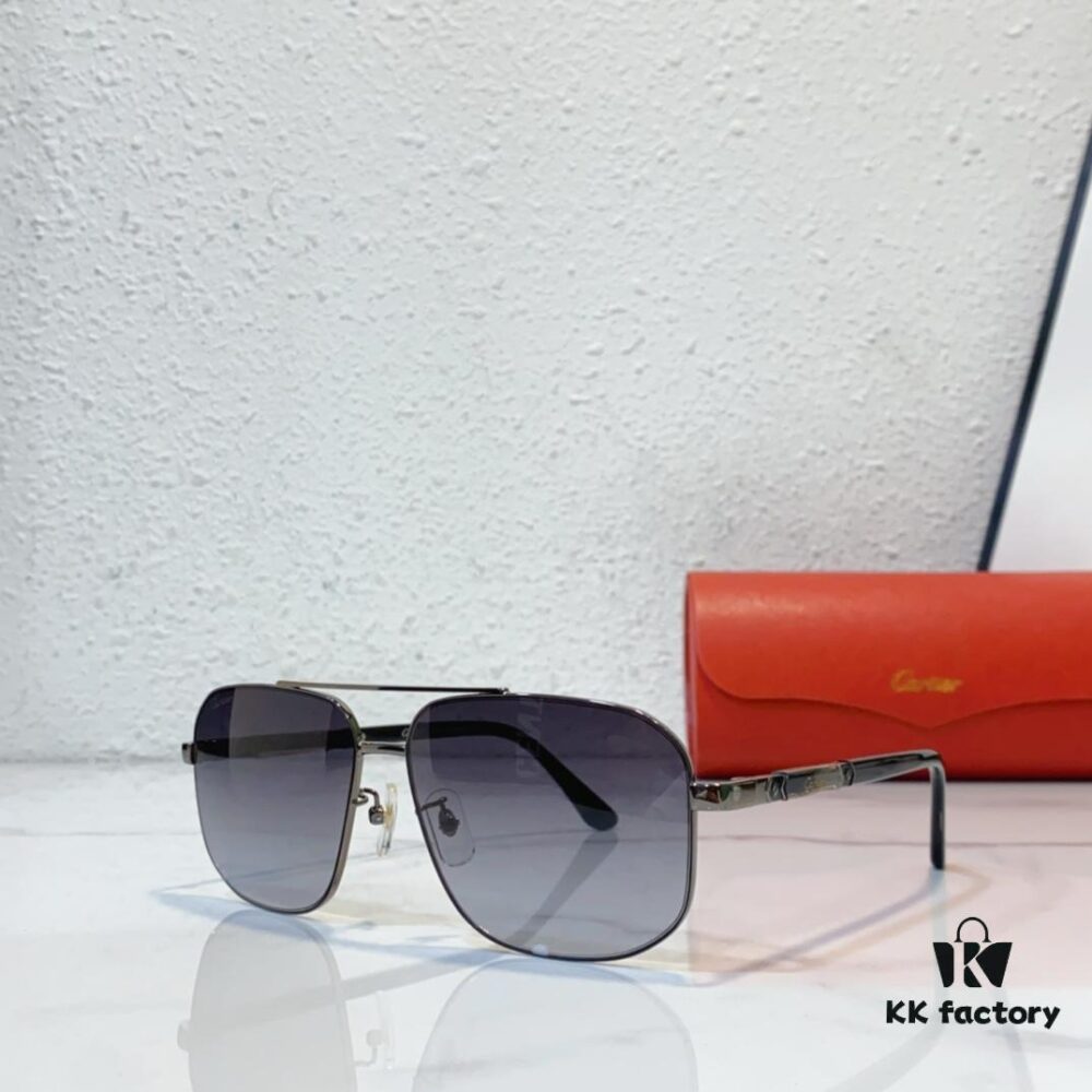 Cartier Vintage Men’s Metal Double-Bridge Sunglasses, Bold Business-Style Driver UV400 UV-Protection Sun Glasses