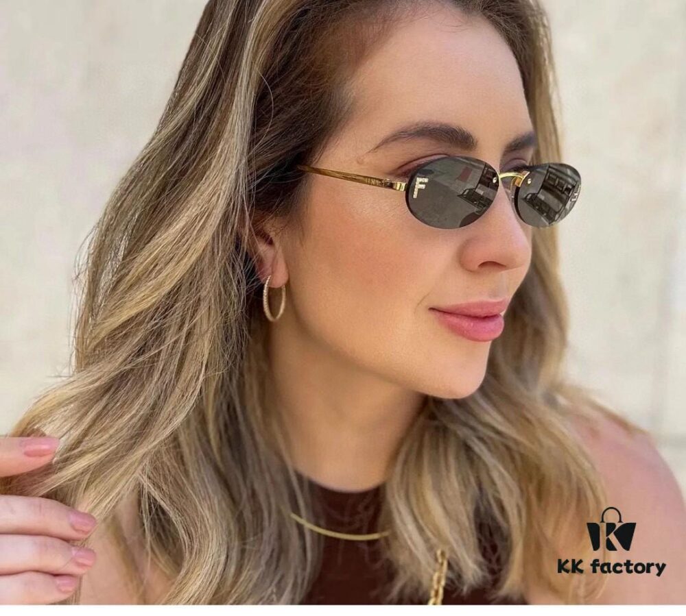 Fendi 2024 New Arrival Metal Frameless Oval Sunglasses for Women, Stylish and Unique UV-Protective Sun Glasses Unisex