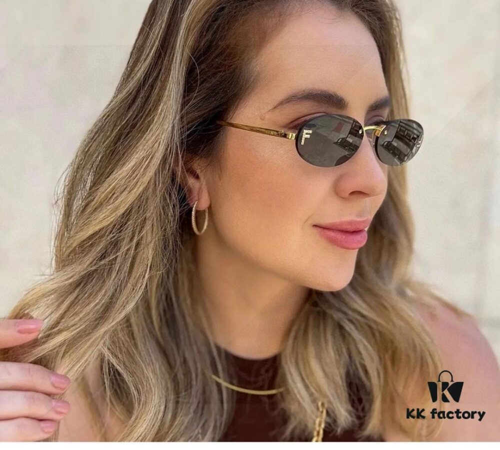 Fendi 2025 New Arrival Metal Frameless Oval Sunglasses for Women, Fashionable and Stylish Unisex UV-Protective Sun Glasses