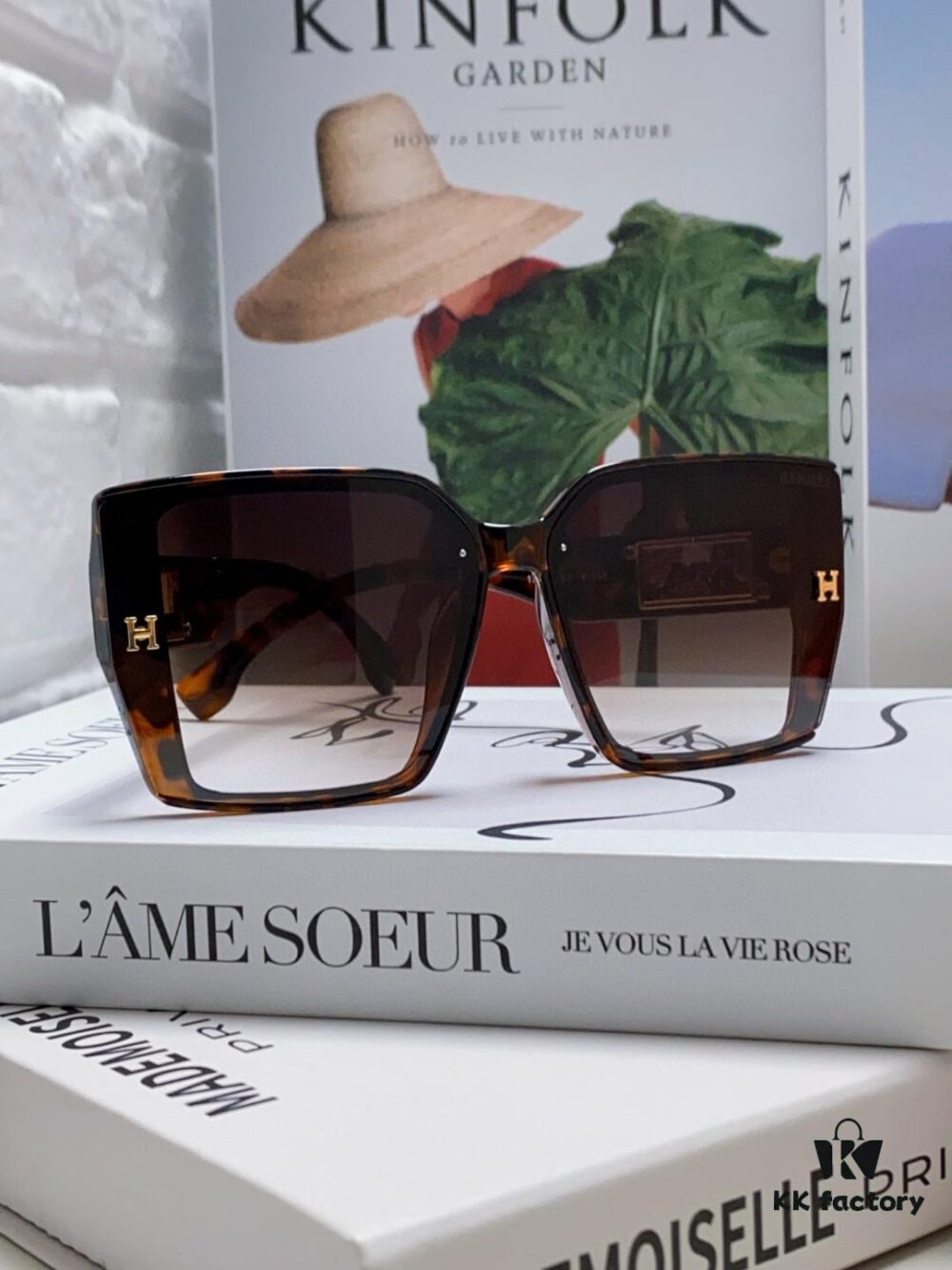 Hermes 2024 New Polarized Sunglasses for Women, Fashionable Oversized Frame, Slimming Effect, UV Protection, Casual and Versatile Sun Glasses