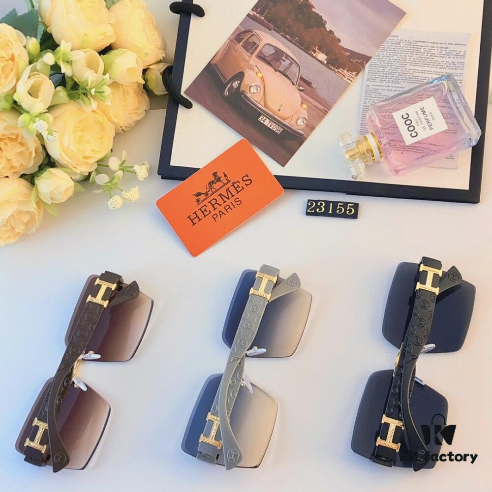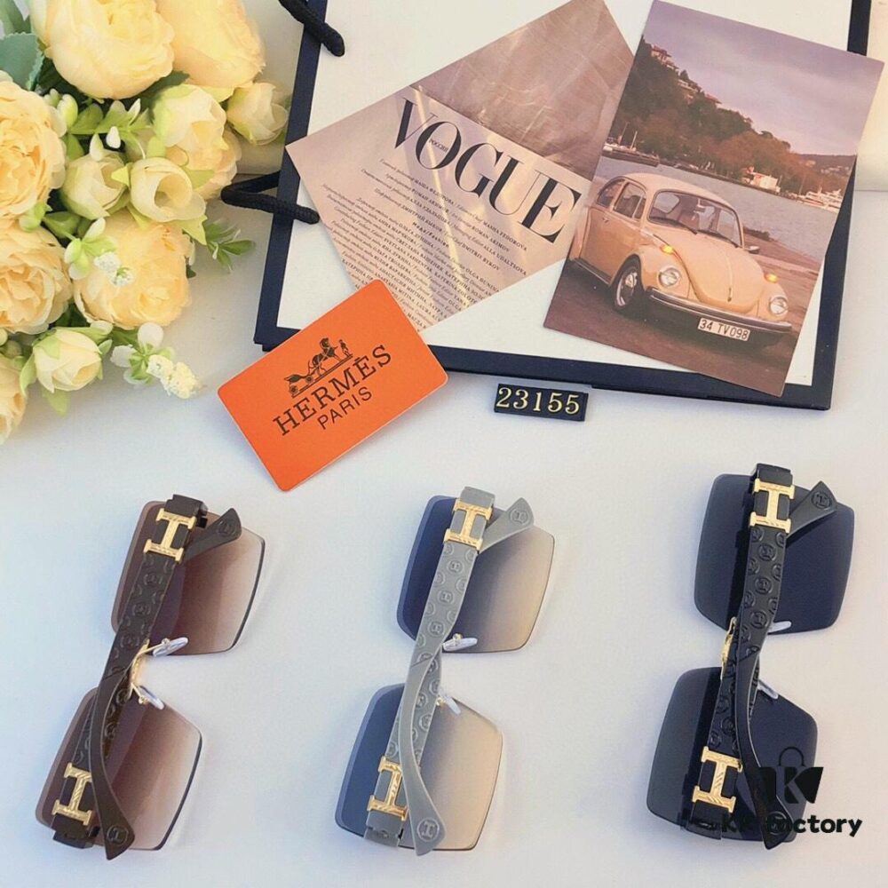 Hermes 2024 New Square Frameless Cut-Out Sunglasses for Women, Retro Fashion Lightweight Luxury Letter Design High-End UV Protection Sun Glasses