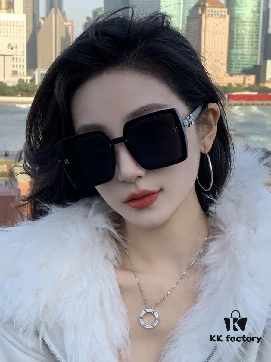 HERMES 2025 Spring New Arrival Original Release Famous Internet Influencer Ultra Popular Luxury Square Sunglasses Classic Full-Frame Design High-Quality Authentic Brand Model: H1301