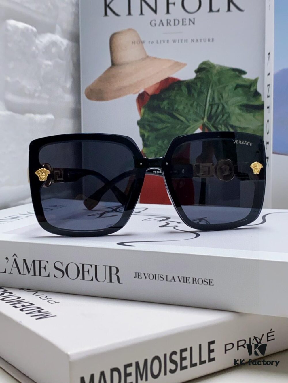 VERSACE 2025 Women’s Square Oversized Full-Rim Sunglasses, European Fashion Carved Design, Xiaohongshu Style