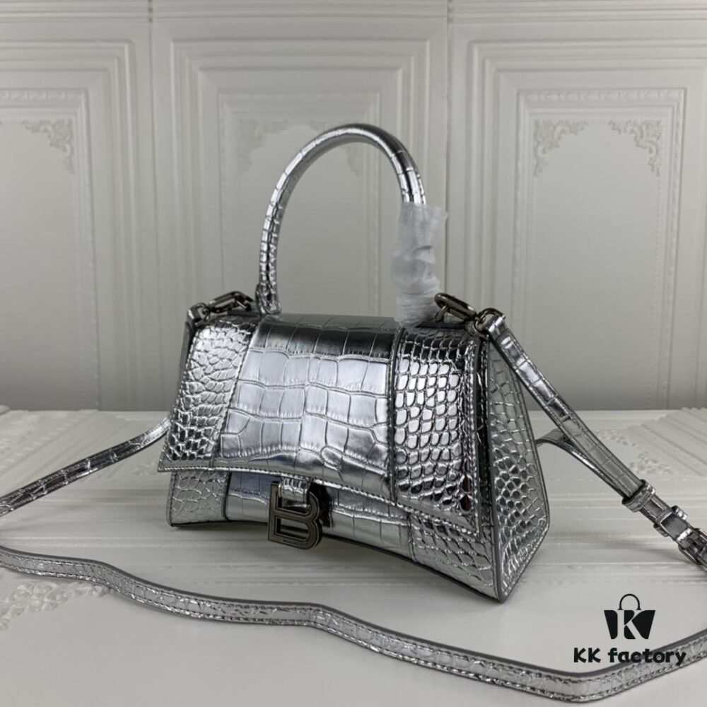 New Large and Small Size 235 Balencia Paris House, This Season’s Highlight Crocodile Texture Hourglass Bag with Signature Arc Shape