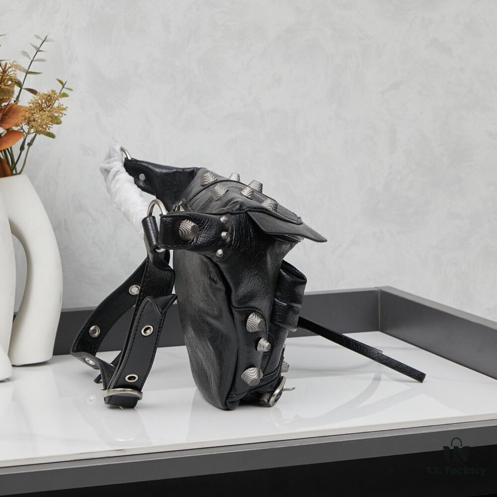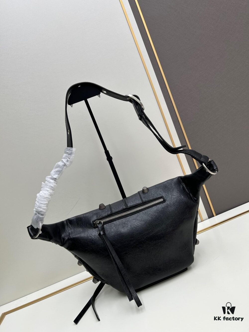 Balenciaga LE CAGOLE ||| LE CAGOLE MEN Medium Black Grained Lamb Leather Belt Bag