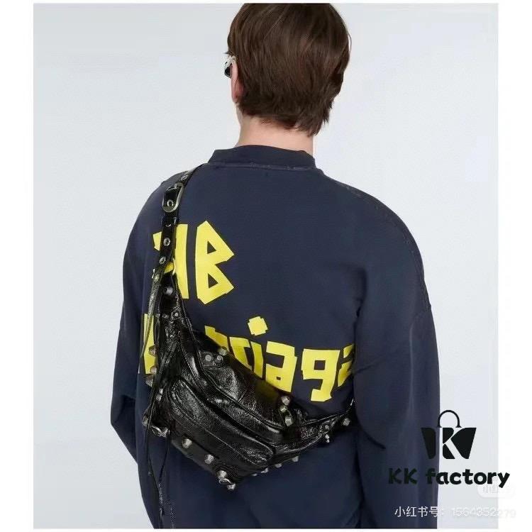 Balenciaga LE CAGOLE MEDIUM BLACK GOAT LEATHER WAIST BAG WITH BOX