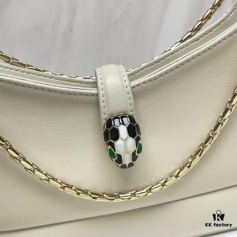 BVLGARI SERPENTI BAIA Small Shoulder Bag in Silver-Textured Calfskin with Snake Head Magnetic Clasp