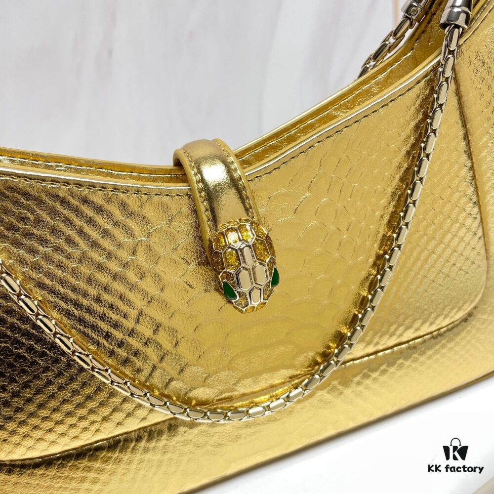 BVLGARI SERPENTI BAIA Small Shoulder Bag in Silvered Textured Calfskin with Snake Head Clasp