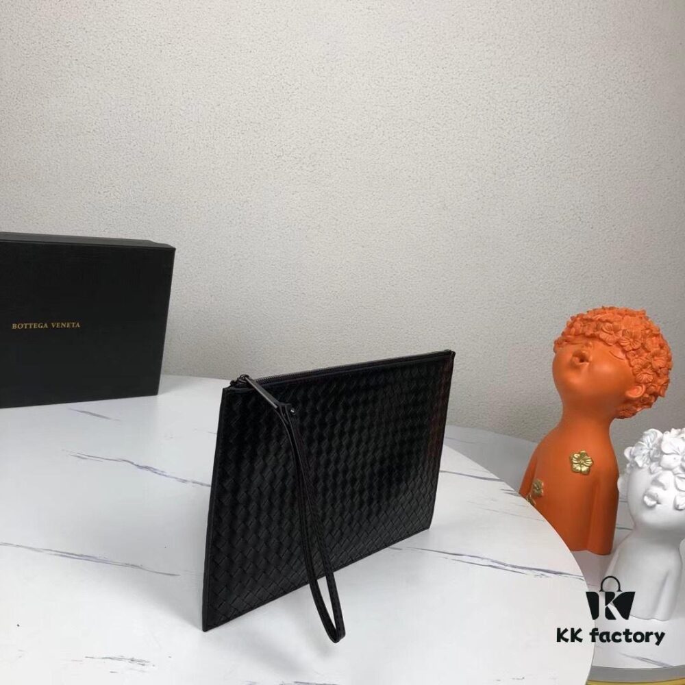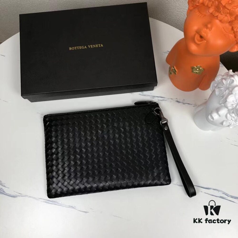 Large Size with Box – BV Men’s Hand Purse, Handcrafted from Premium Waxed Cowhide Leather, Braided Design, Multi-Functional Wallet and Clutch with Zipper Closure