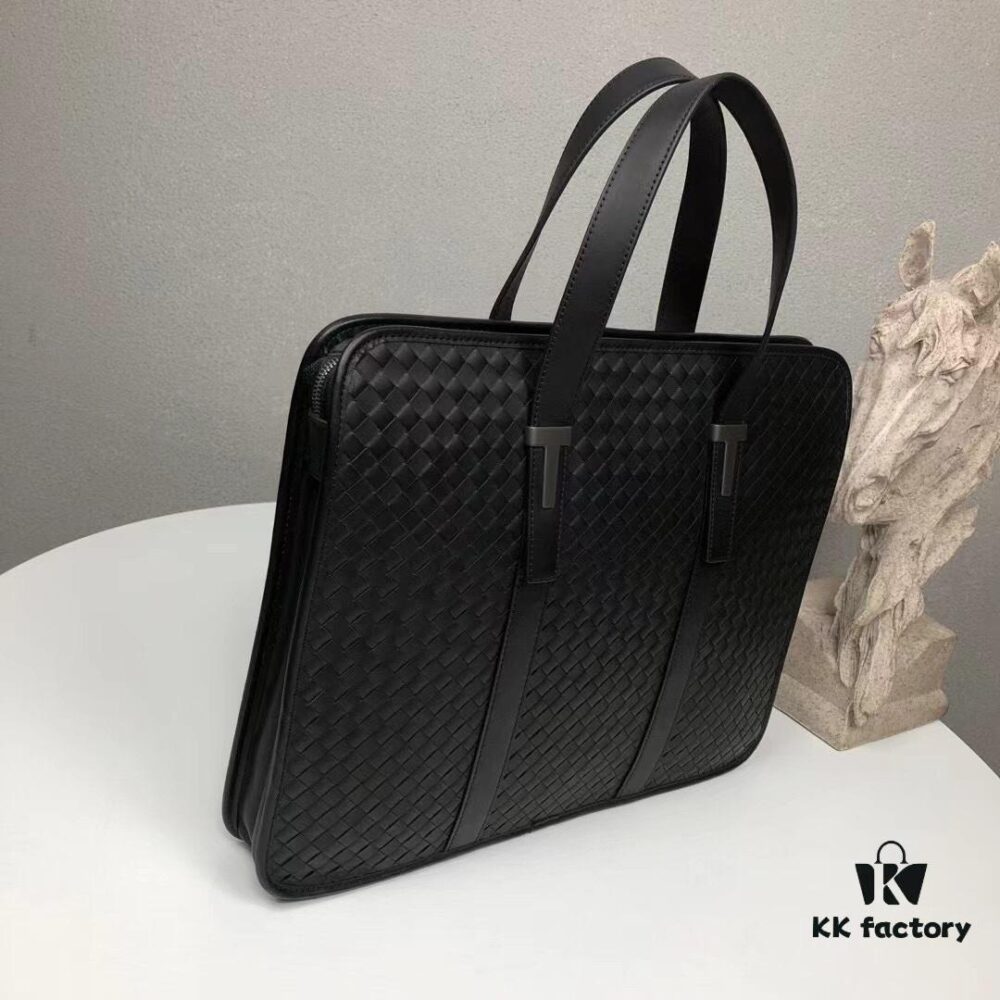 BV Multi-Compartment High-End Genuine Leather Handbag – Top-Quality Wax-Coated Calfskin, Original Cabinet Hardware, Elegant Black Design
